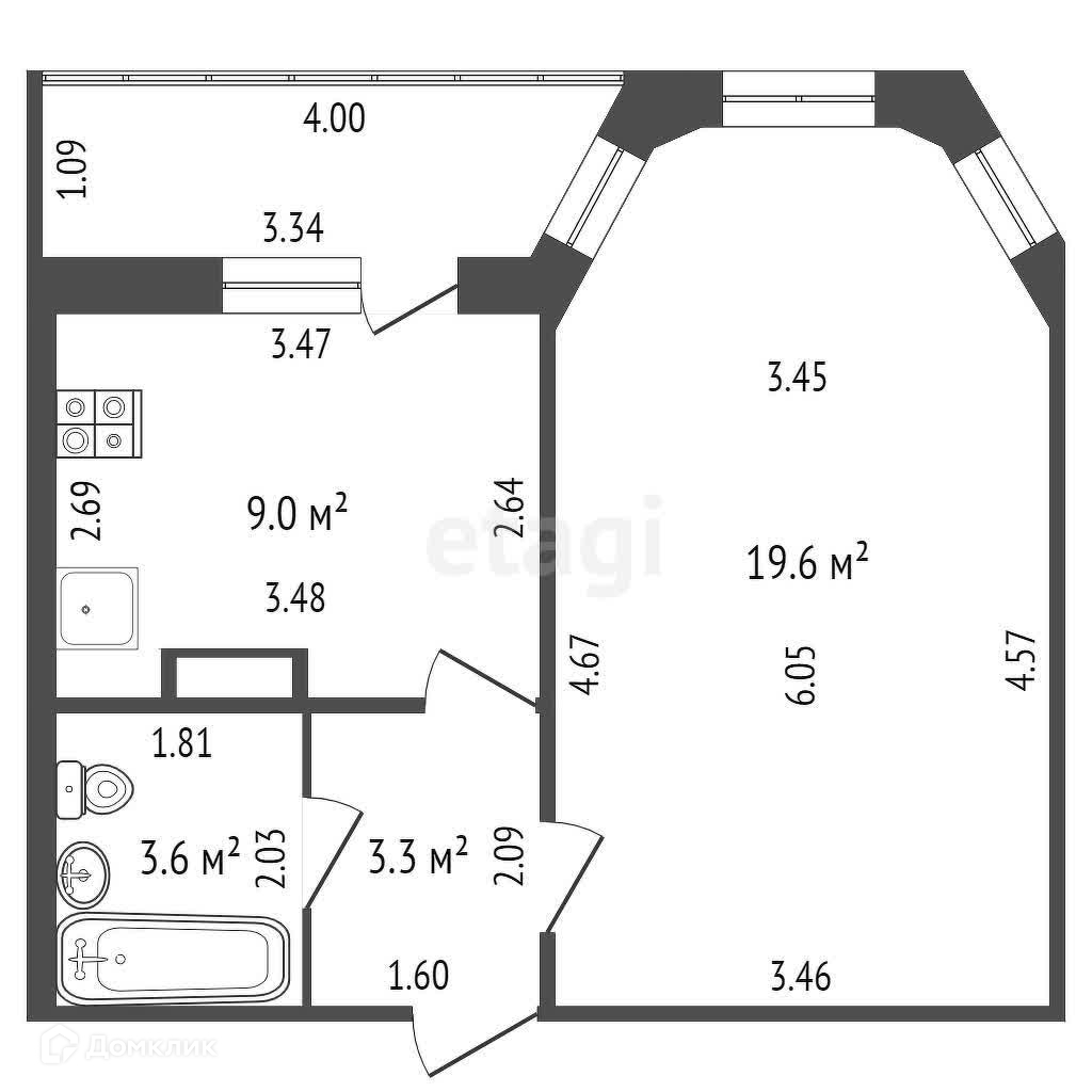 Балкон, лоджия 1 балкон