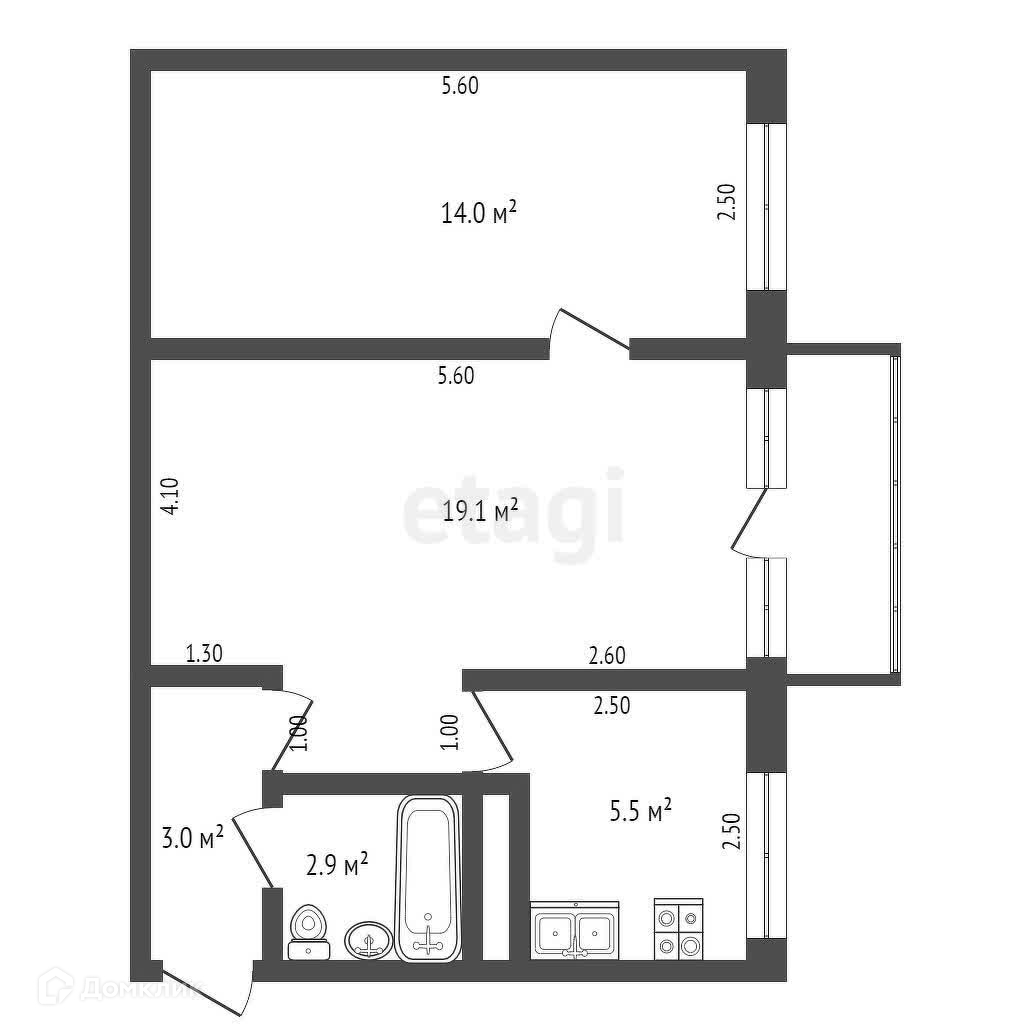Балкон, лоджия 1 балкон