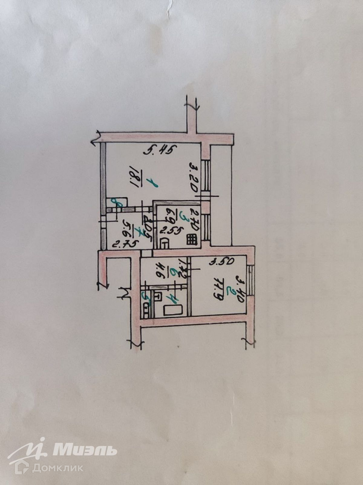 Общая площадь 55.5 м2