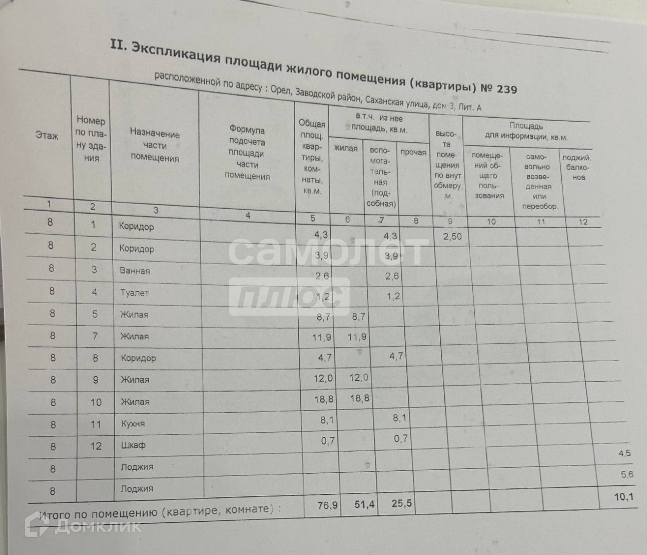 Общая площадь 76.9 м2