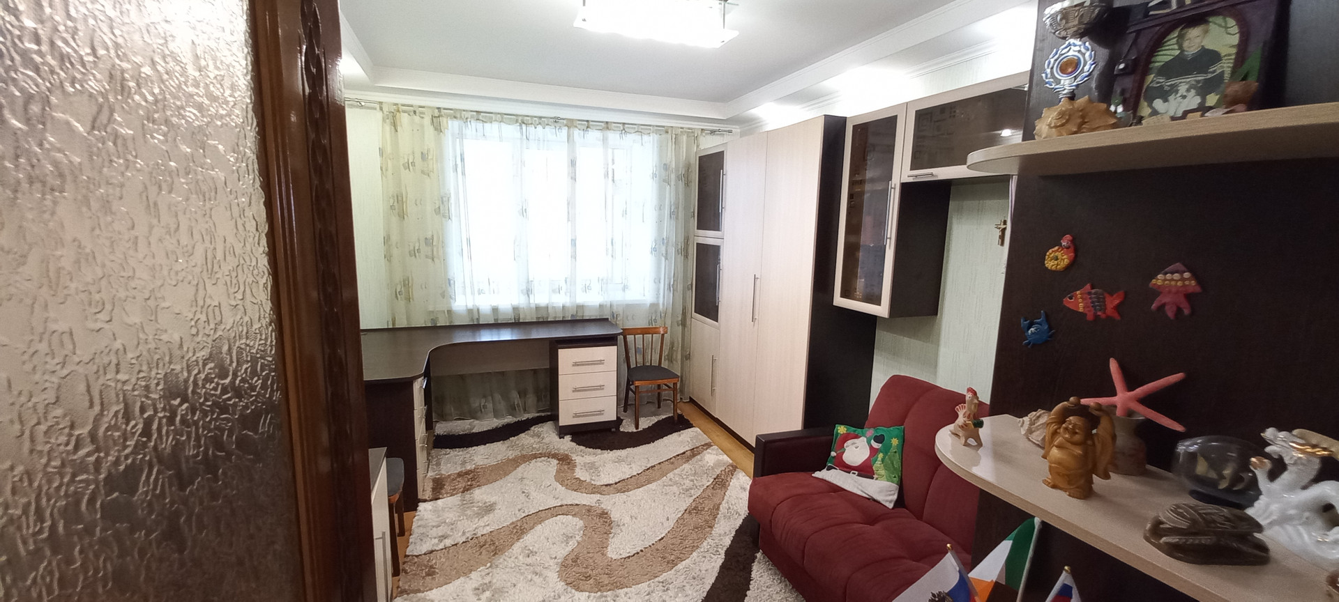 + В квартире: входная дверь сейфовая. мощная надежная, окна ПВХ, радиаторы отопительные би-металлические с отдельными кранами, пол ламинат, стены в жилых комнатах оклеены обоями, в вспомогательных помещениях декоративная штукатурка, потолок о шпаклёван и окрашен, встроенные светодиодные светильники, все комнаты раздельные, дополнительно имеются 2 (ДВЕ) лоджии отделаны с встроенными шкафами, остекление окна ПВХ, утеплены, кондиционер сплит система установлен в кухне.