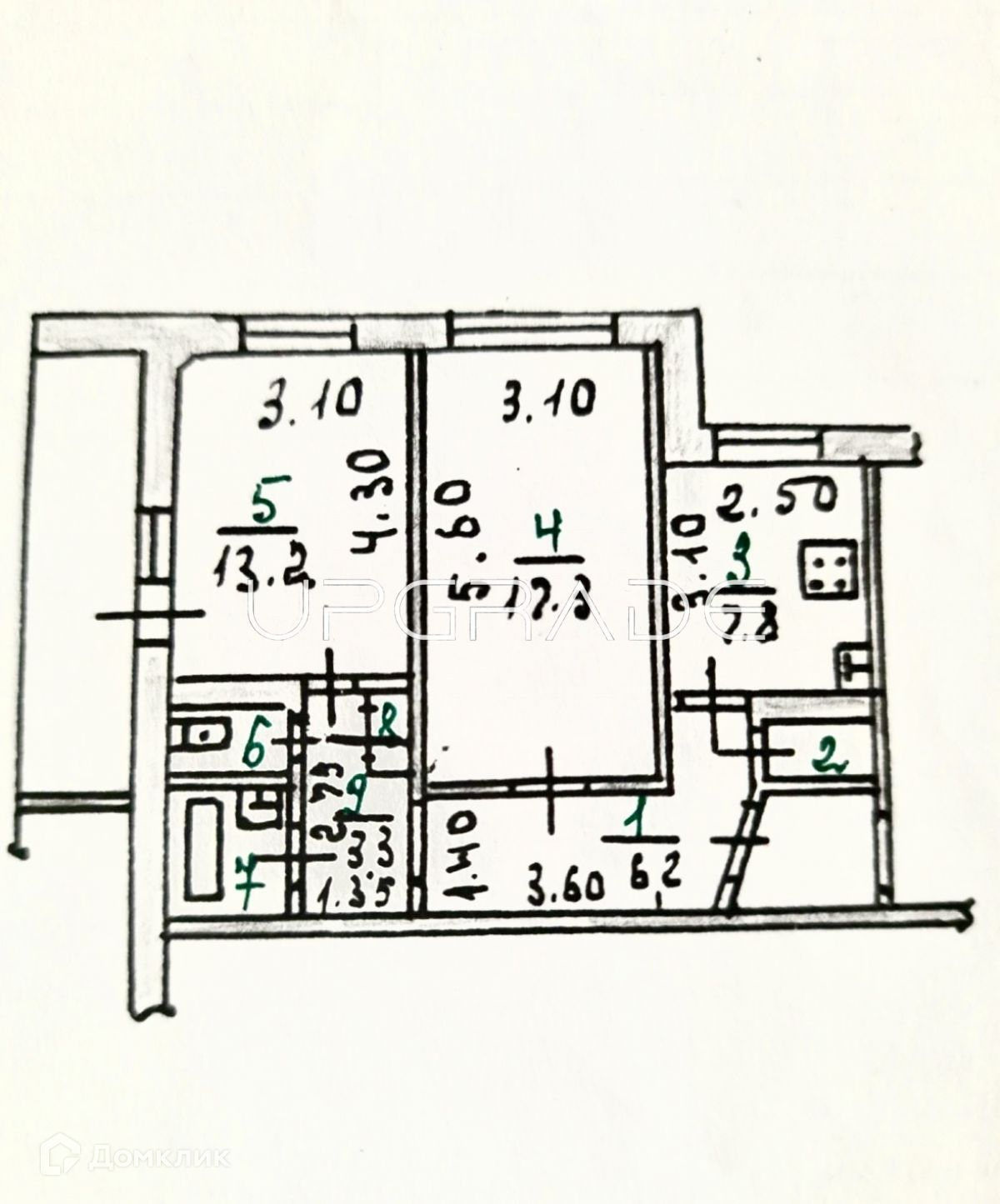 Общая площадь 53.7 м2