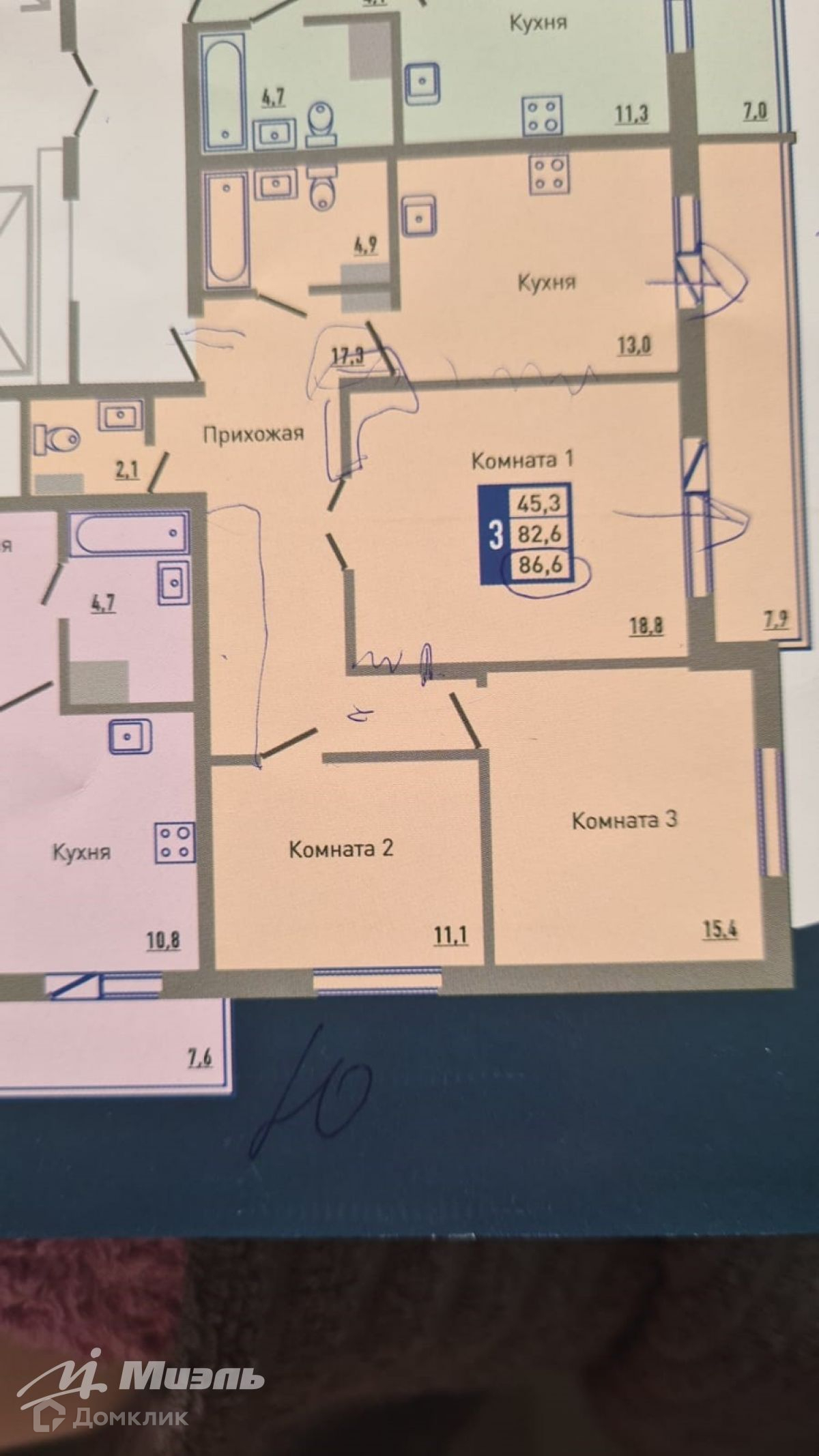 Количество комнат 3