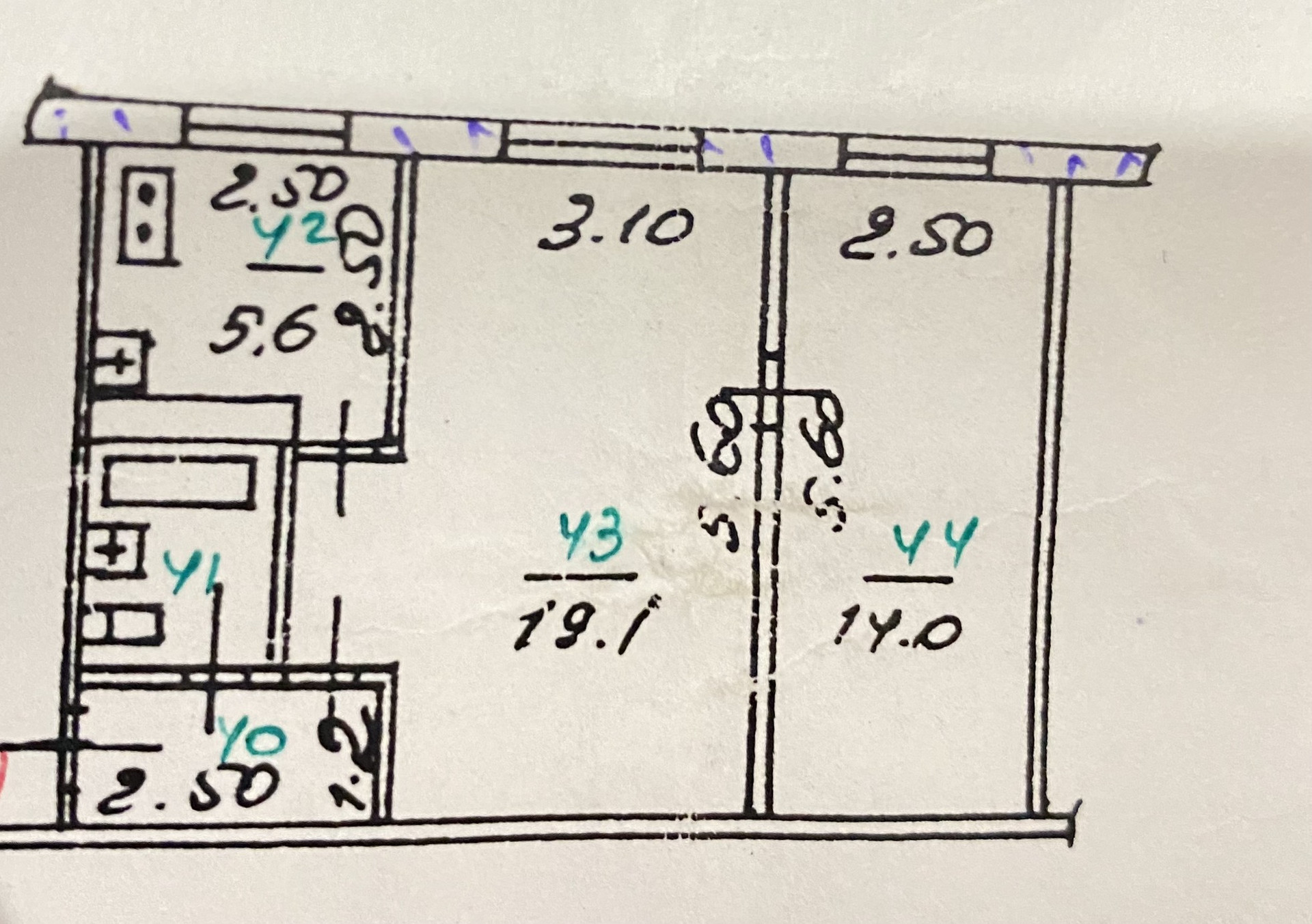 Жилая площадь 33.1 м2
