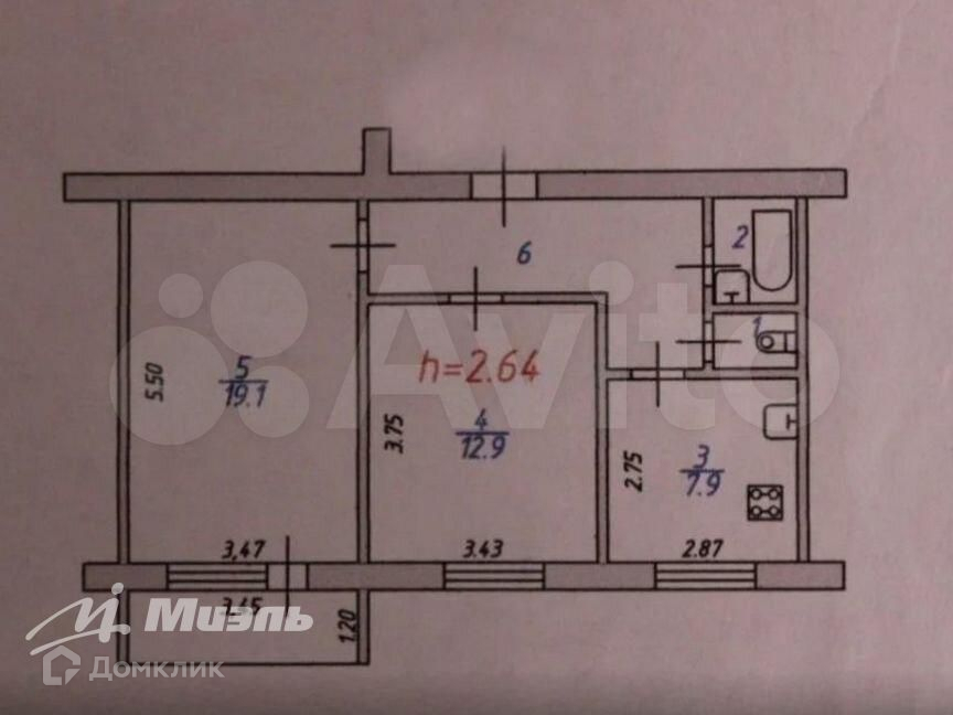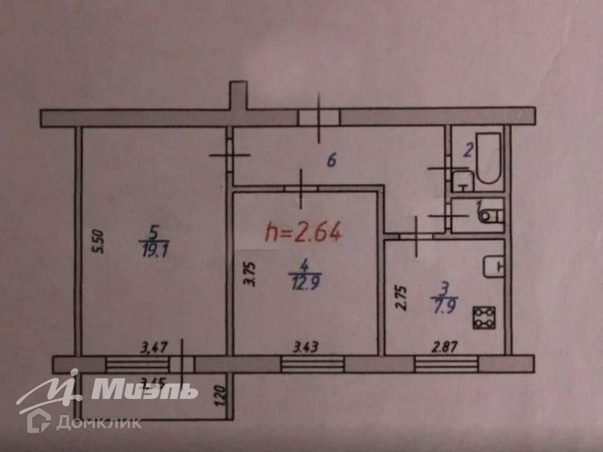 Общая площадь 50.6 м2