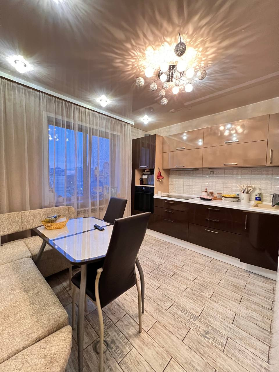 • Напольное покрытие влагостойкий ламинат 33 класса, на кухне керамогранит.