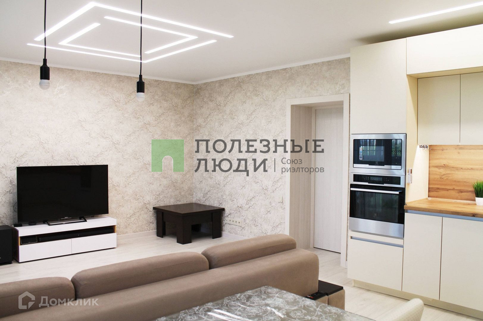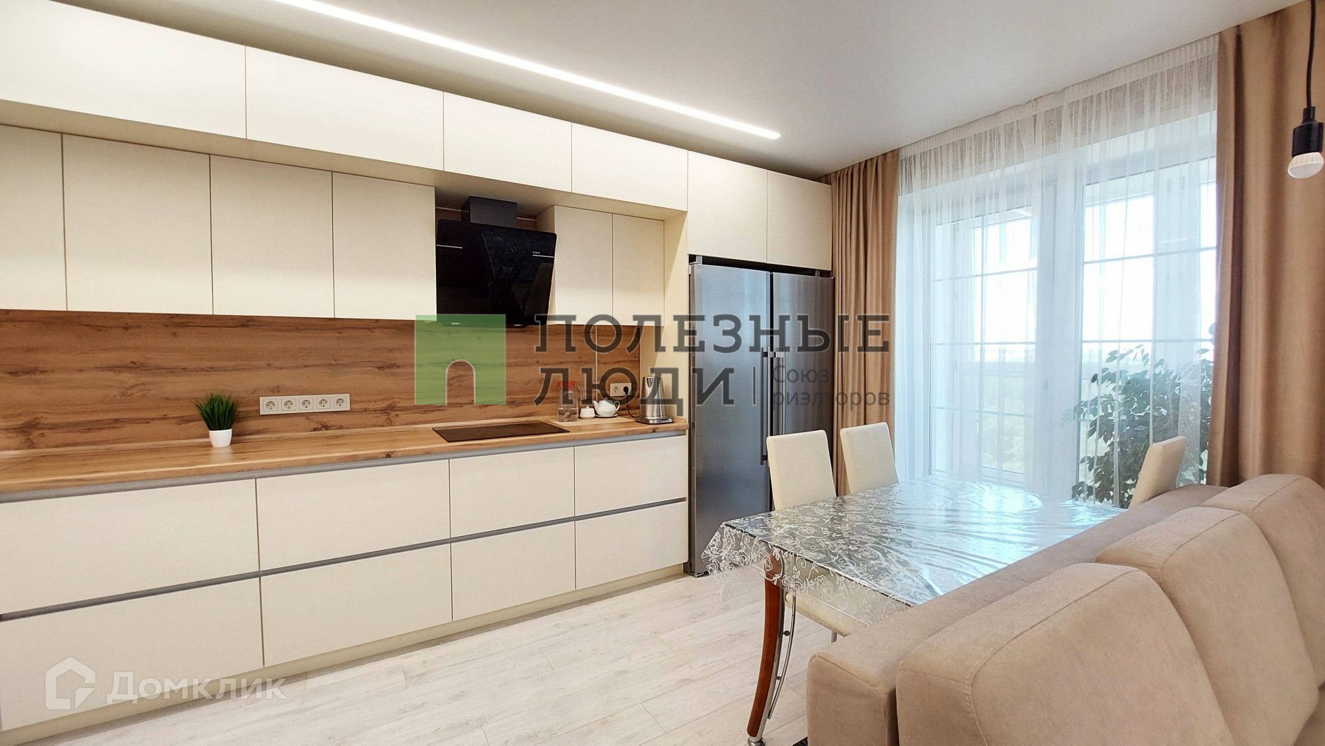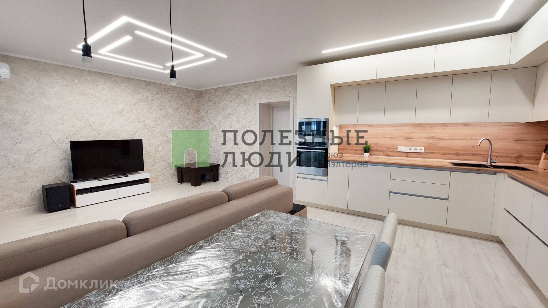 В квартире прихожая пол- напольная плитка и ламинат. В жилых комнатах и кухне пол - ламинат. Кухня объединена с гостиной, имеется встроенный качественный кухонный гарнитур, установлена новая техника (посудомоечная машина, холодильник, вытяжная система). В квартире 2 санузла, имеется как ванная комната, так и душевая кабина. Большая лоджия с панорамными окнами и выходом из кухни. По всей квартира была сделана качественная система освещения.