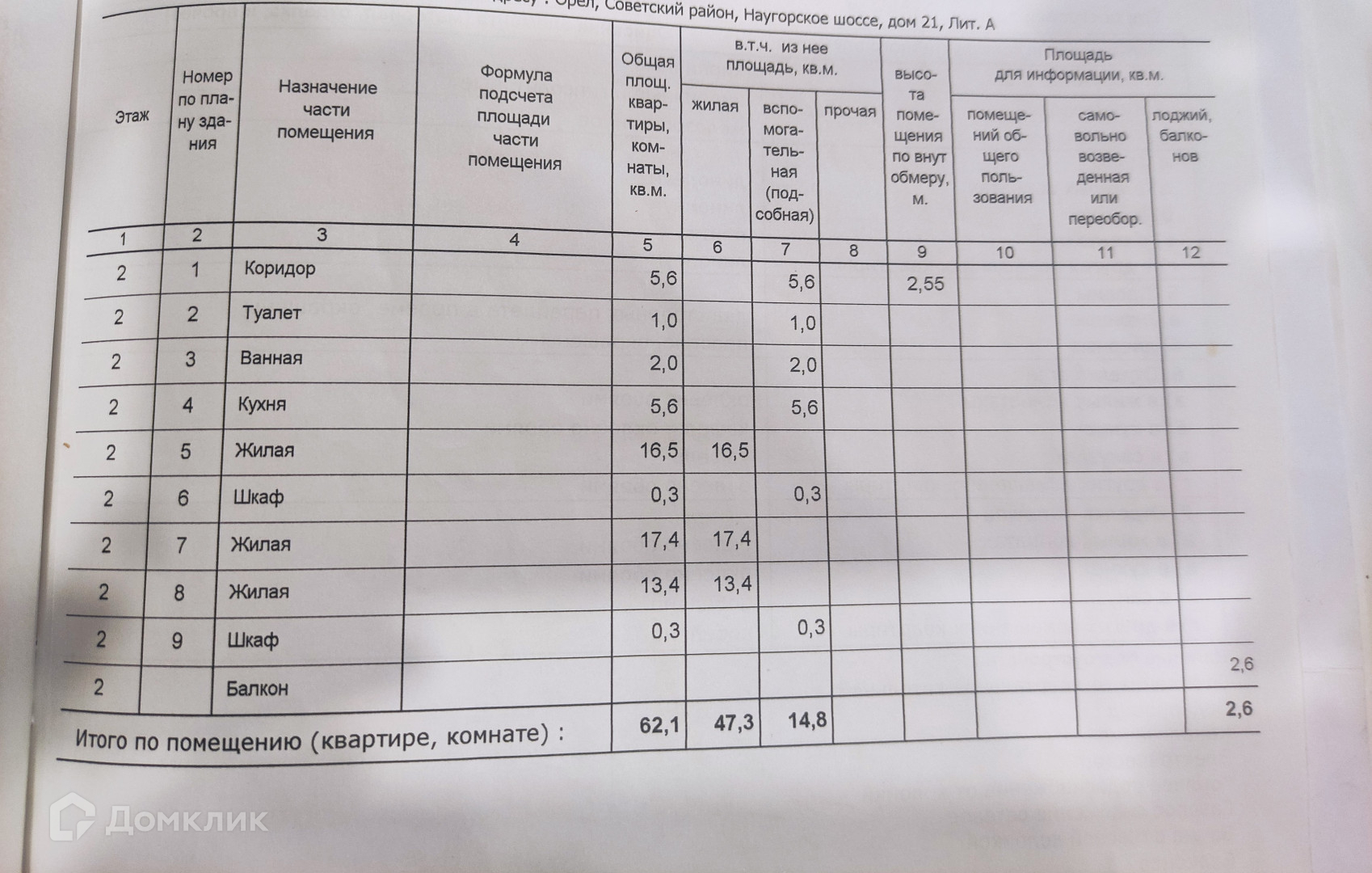 Высота потолков 2.55 м