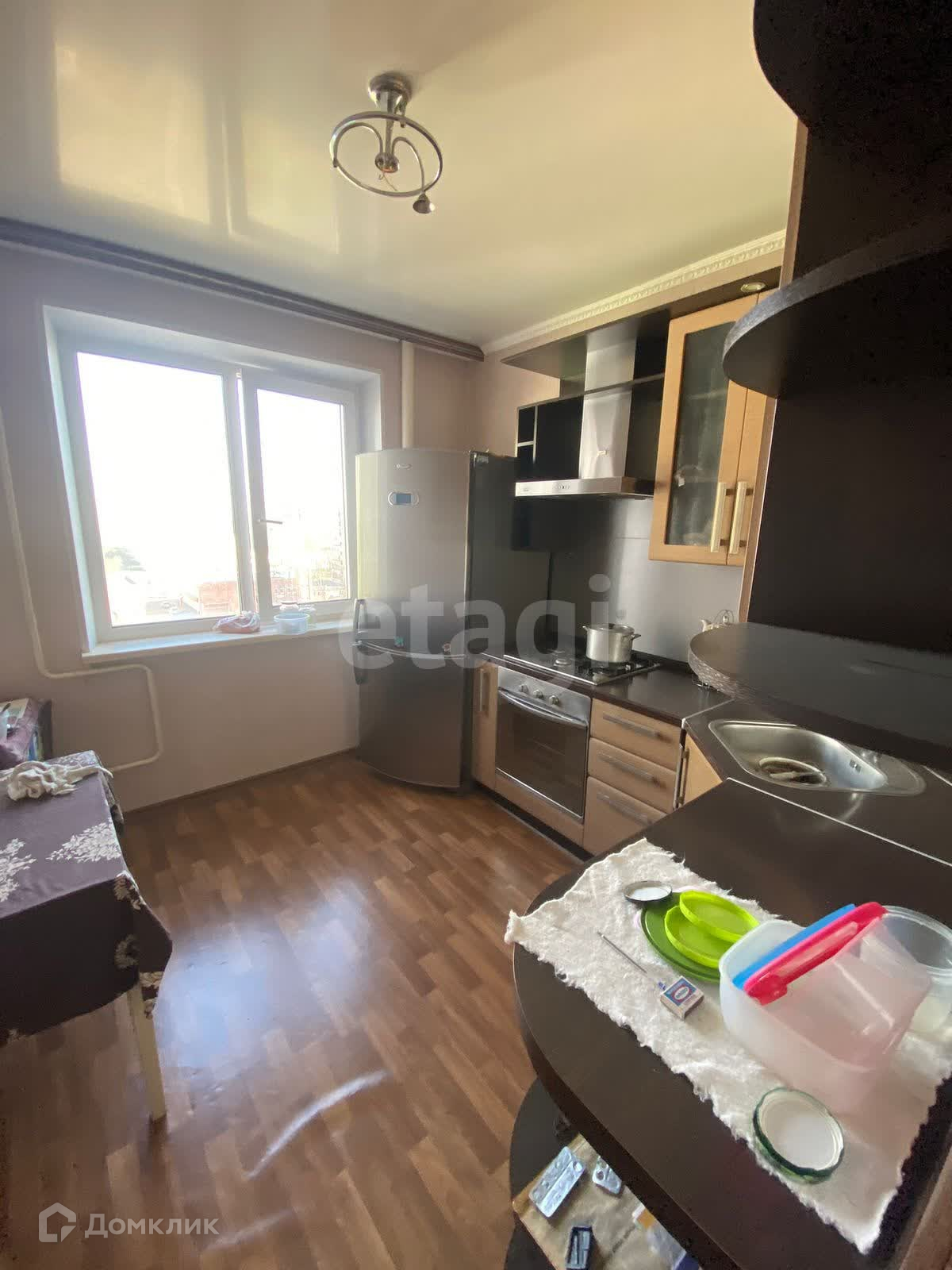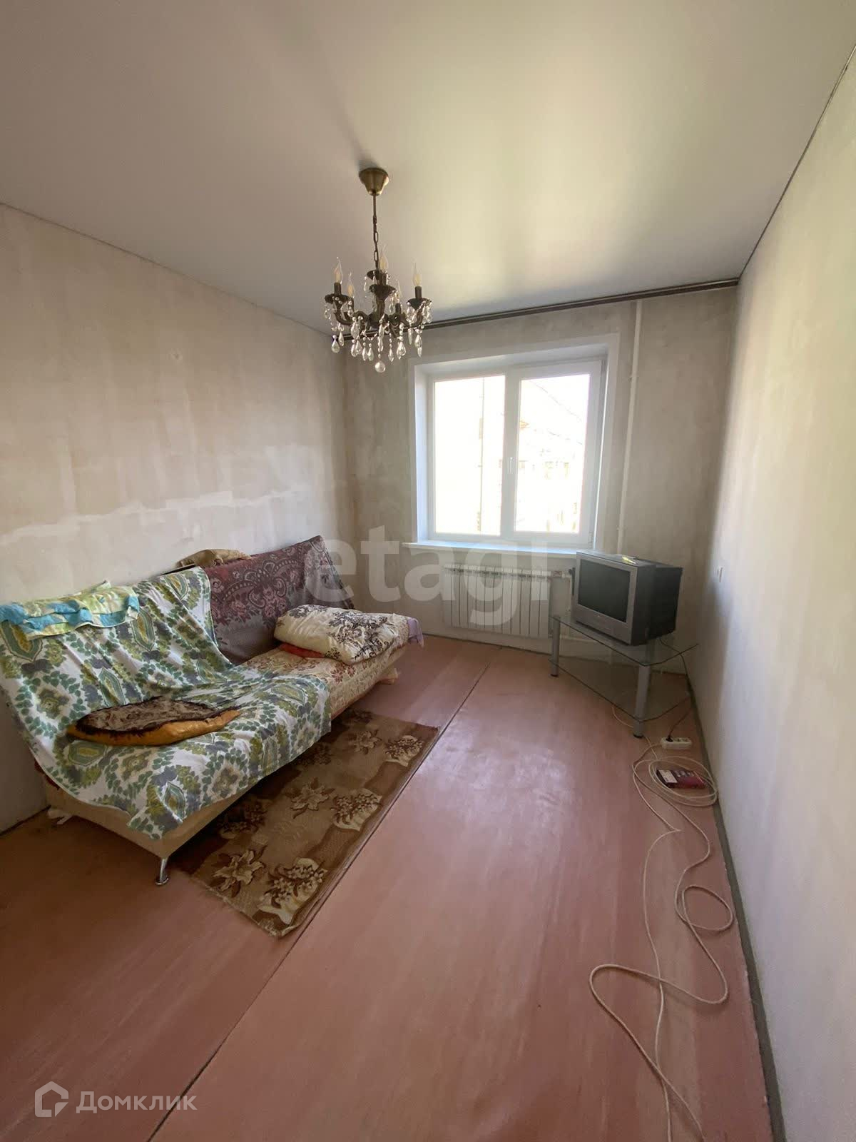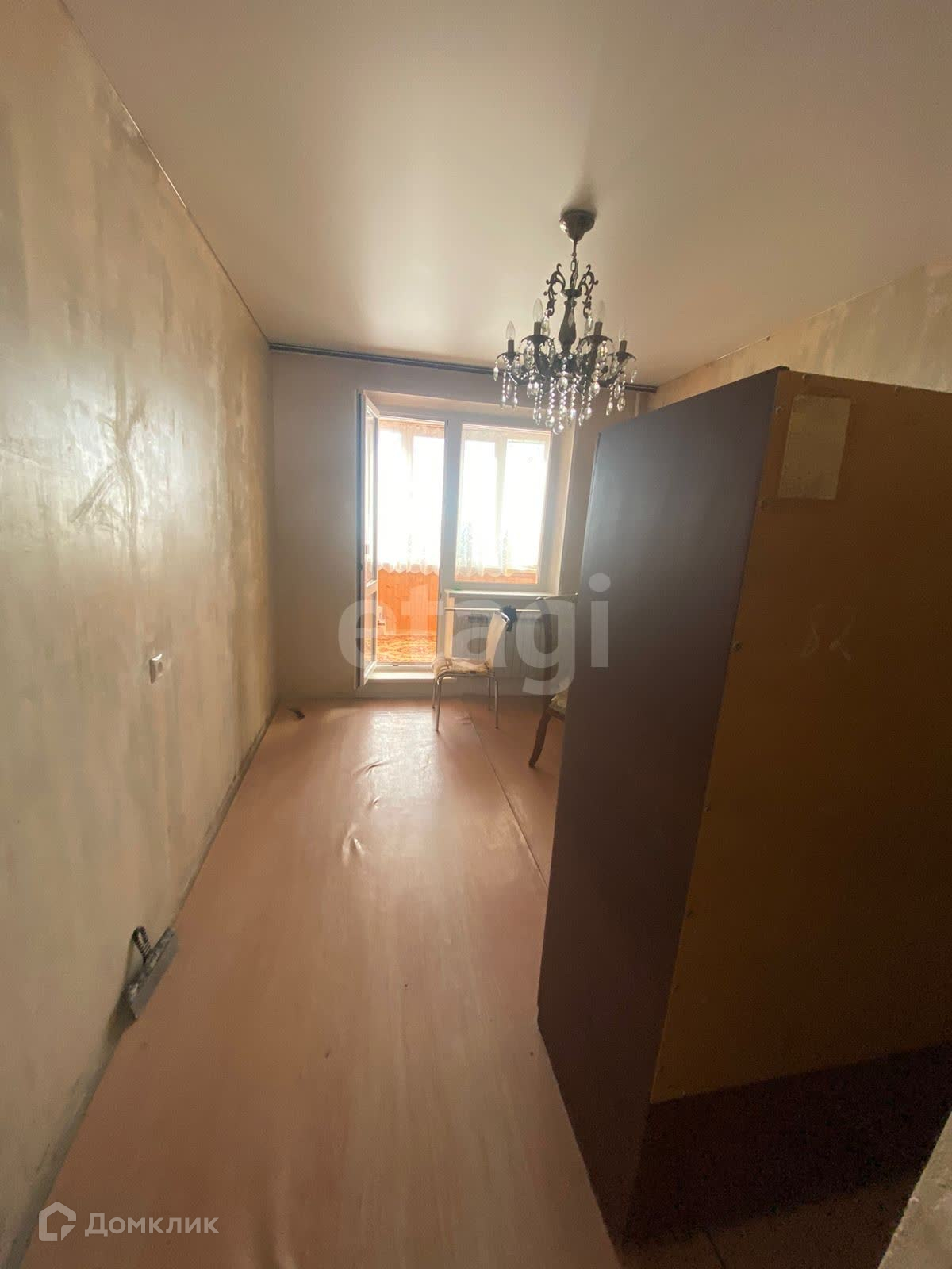 Выход на застекленный балкон из комнаты. В квартире остаётся кухонный гарнитур и техника по договоренности.