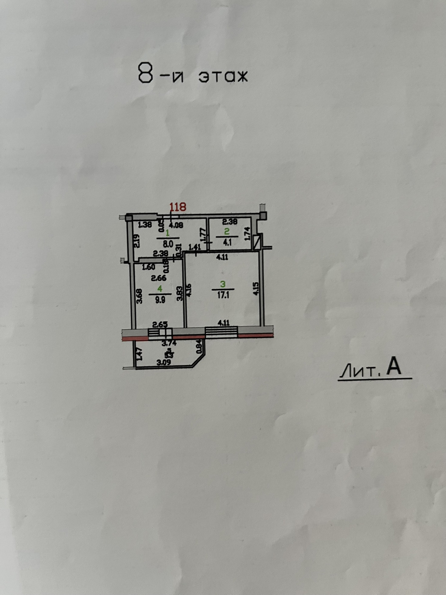 Жилая площадь 17.1 м2