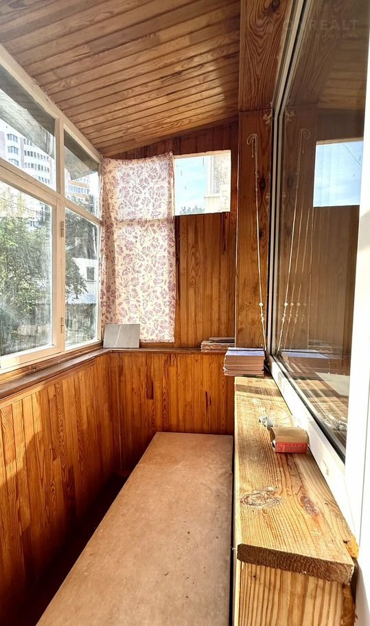 ✅  балкон просторный, отделан деревом.