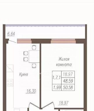 Общая площадь 48.6 м2