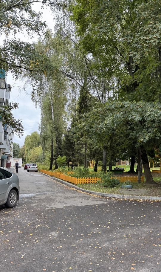 Во дворе детская площадка, парковка