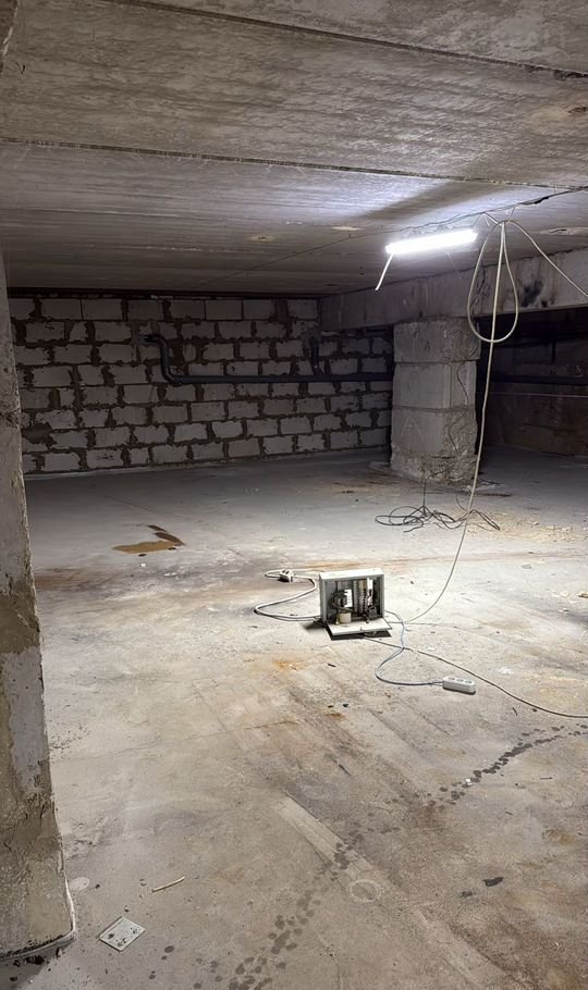 - новый наливной пол по всему первому этажу и подвалу;