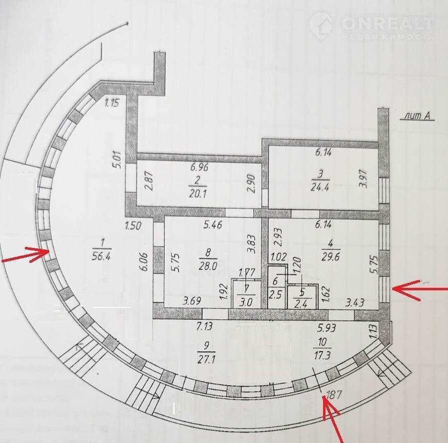 - высота потолков 3 метра;