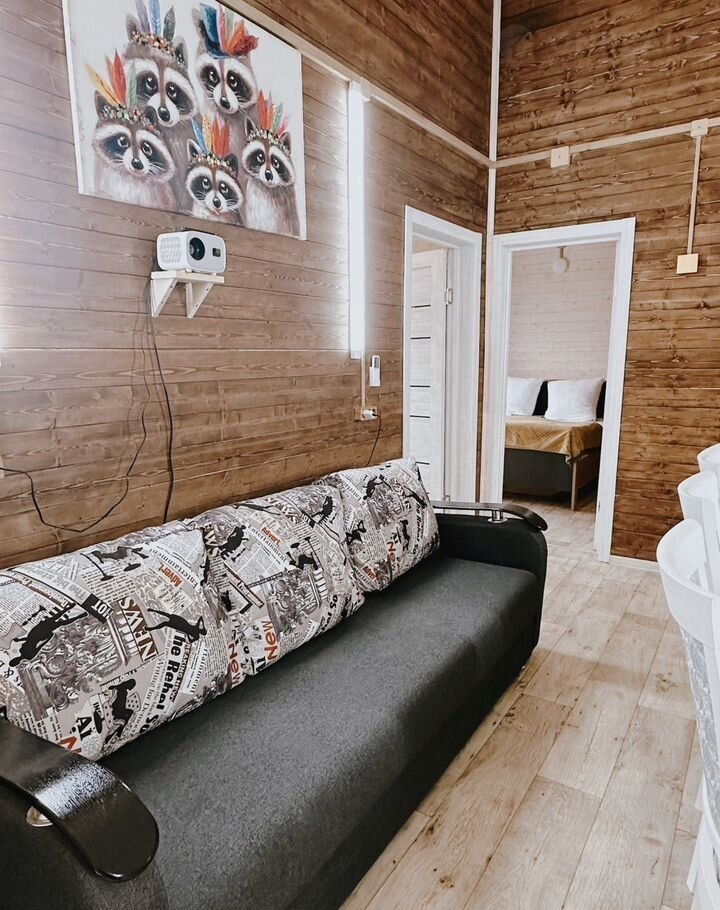 ℹ️ В доме двуспальная кровать в отдельной комнате и раскладывается двухместный диван в кухне-гостиной. Есть возможность предоставить раскладушку + 1000 руб/чел