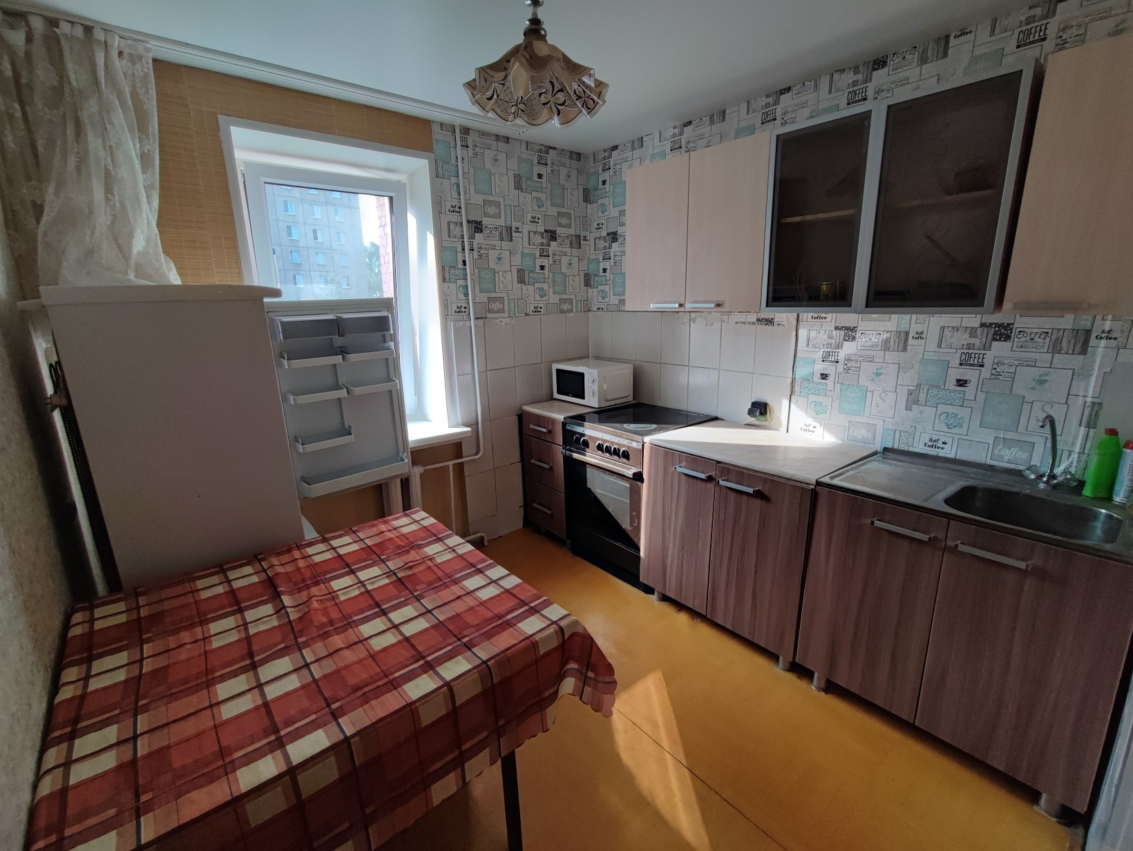 В квартире имеются 2 спальных места в разных комнатах, микроволновая печь, холодильник, стиральная машина.