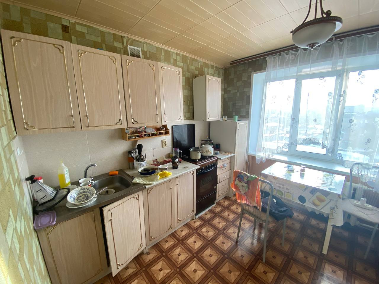 В квартире имеется все минимально необходимое для комфортного проживания. Мебель: кухонный гарнитур, раскладной диван, кресла, шкафы. Техника: газовая плита с духовкой, стиральная машина, холодильник, тв.