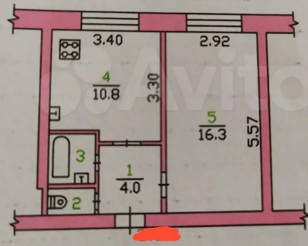 Квартира на 3 этаже 5 этажного кирпичного дома, окна во двор, солнечная сторона, без балкона.