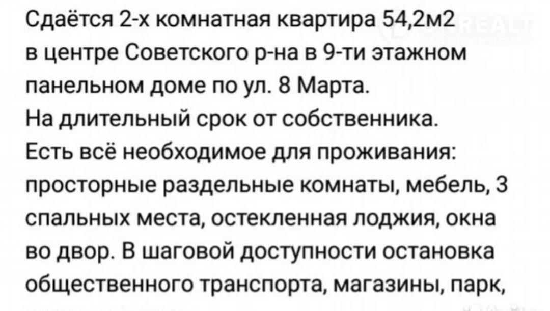 2-комнатная квартира, 54.2 м2, в аренду на длительный срок в Орле