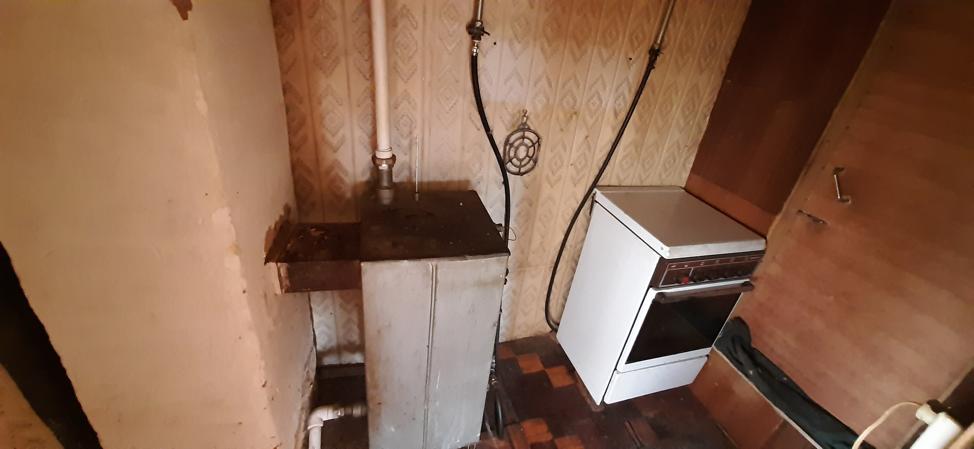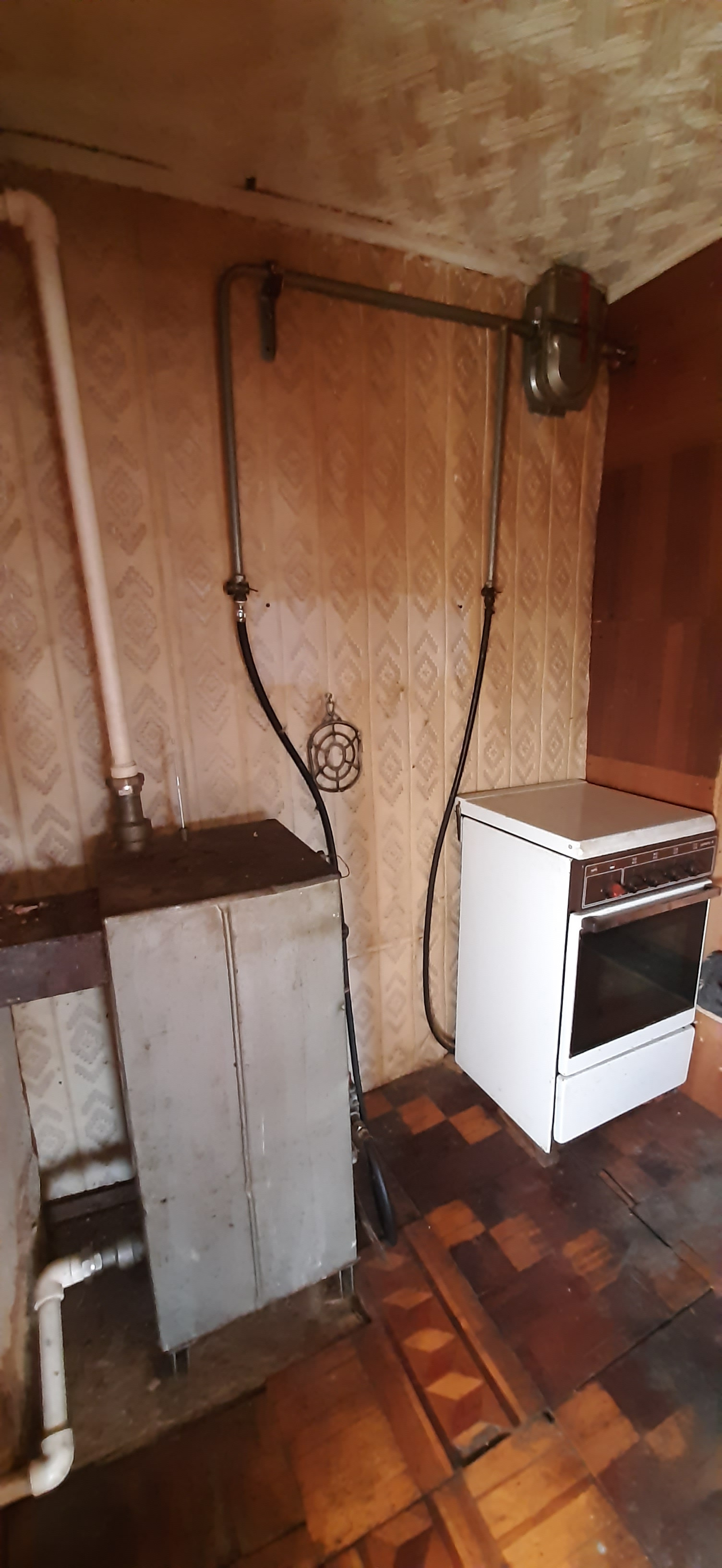 - газифицирован, котел напольный, вода центральная, сливная яма.