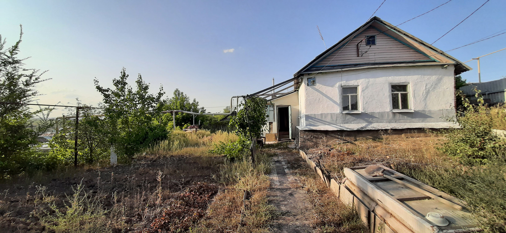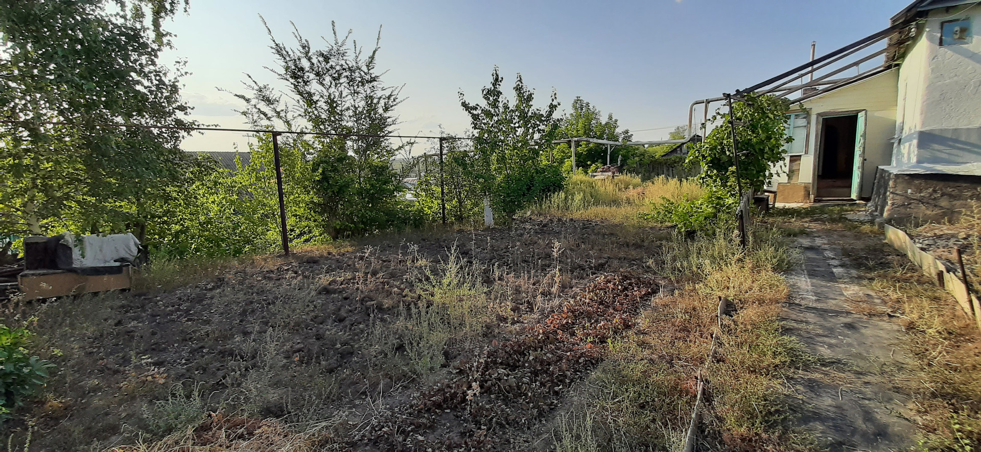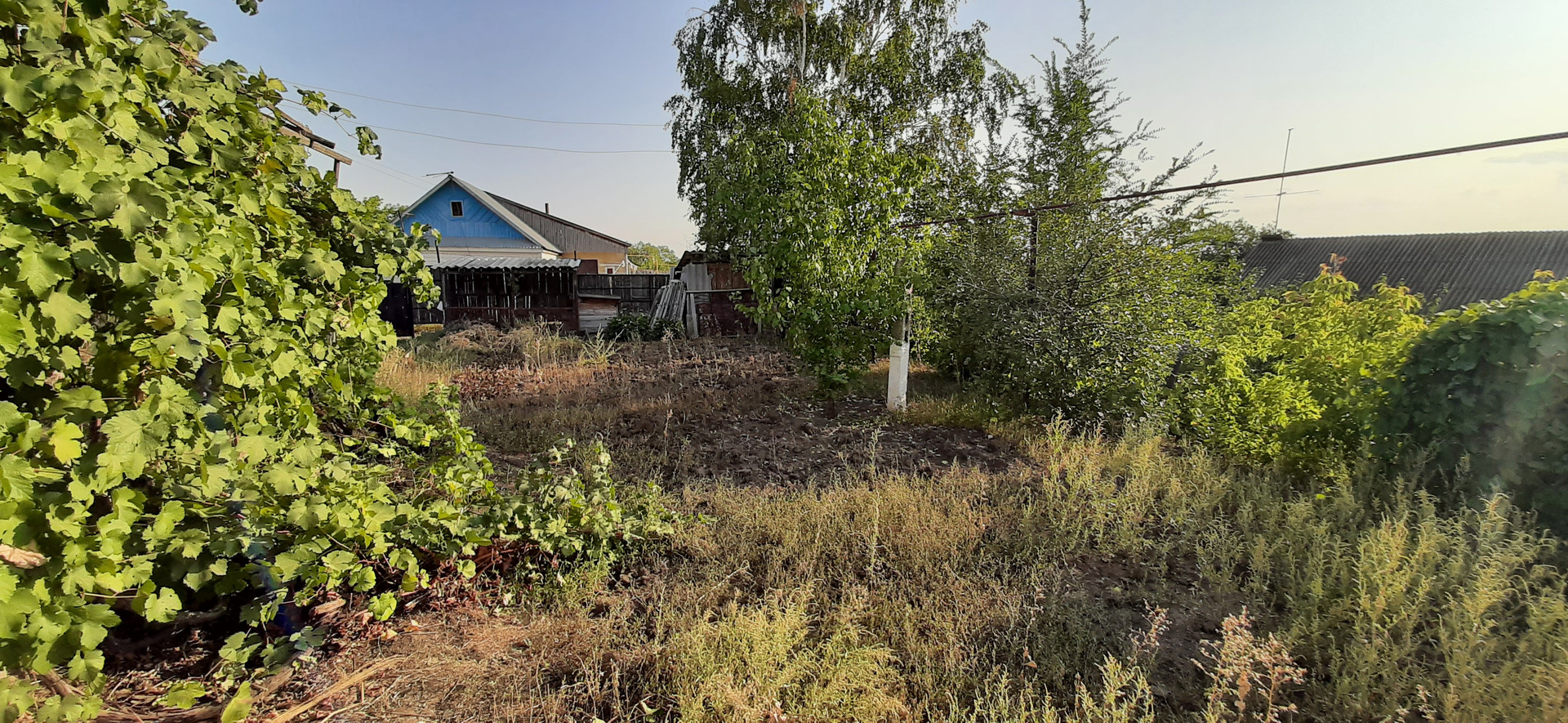- участок с насаждениям: виноград 2 сорта, абрикос, вишня, хоз.постройки, вольер для собаки.
