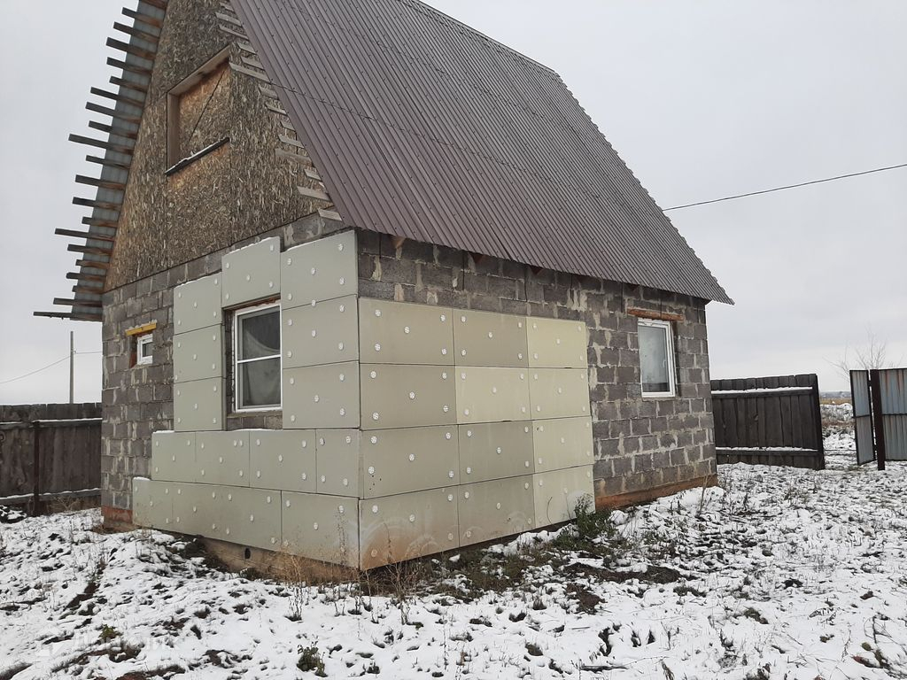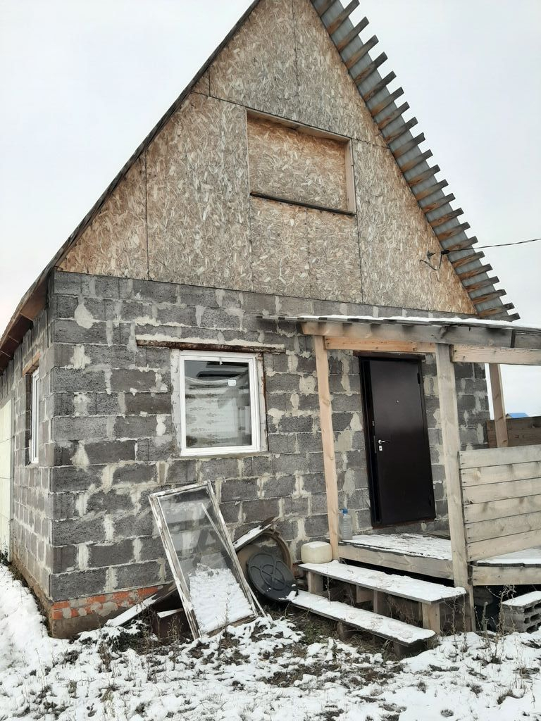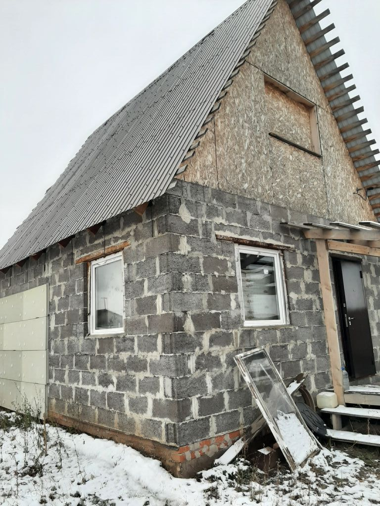 Дом построен из керамзитоблока. Пластиковые окна. На 1 этаже кухня 10 кв.м., гостиная 16 кв.м., спальня 11 кв.м. и совмещенный санузел. Одна часть дома утеплена. На втором этаже возможно обустройство 2 спален.