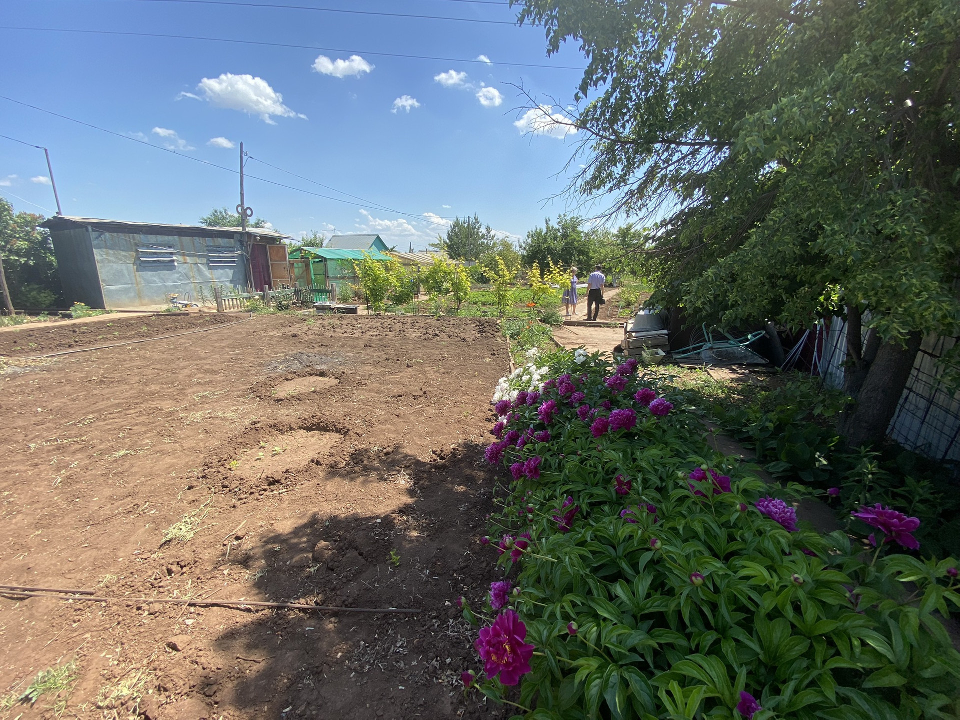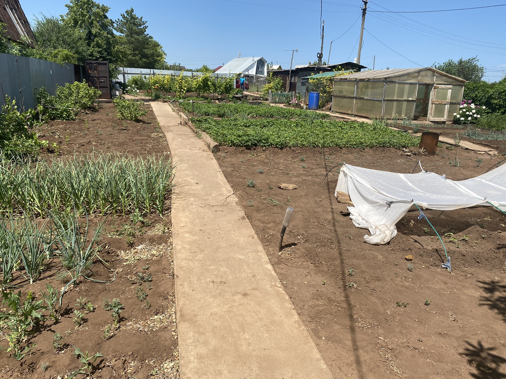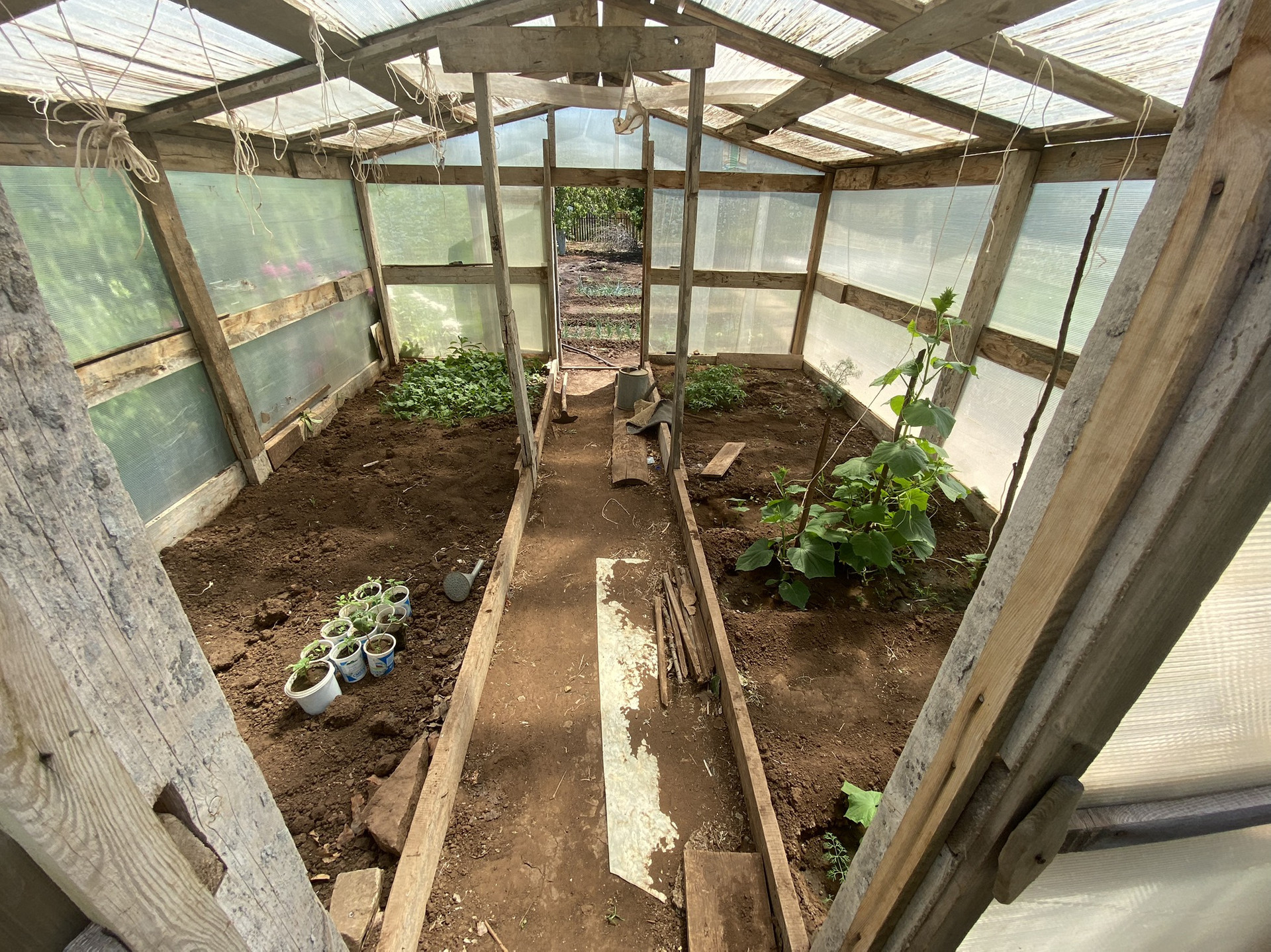НАСАЖДЕНИЯ: помидоры, огурцы, картошка, малина, клубника 2 сорта, мята, лук, различные цветы, смородина красная и черная, 3 дерева яблони, виноград, облепихи, липа, ежевика, жимолость.
