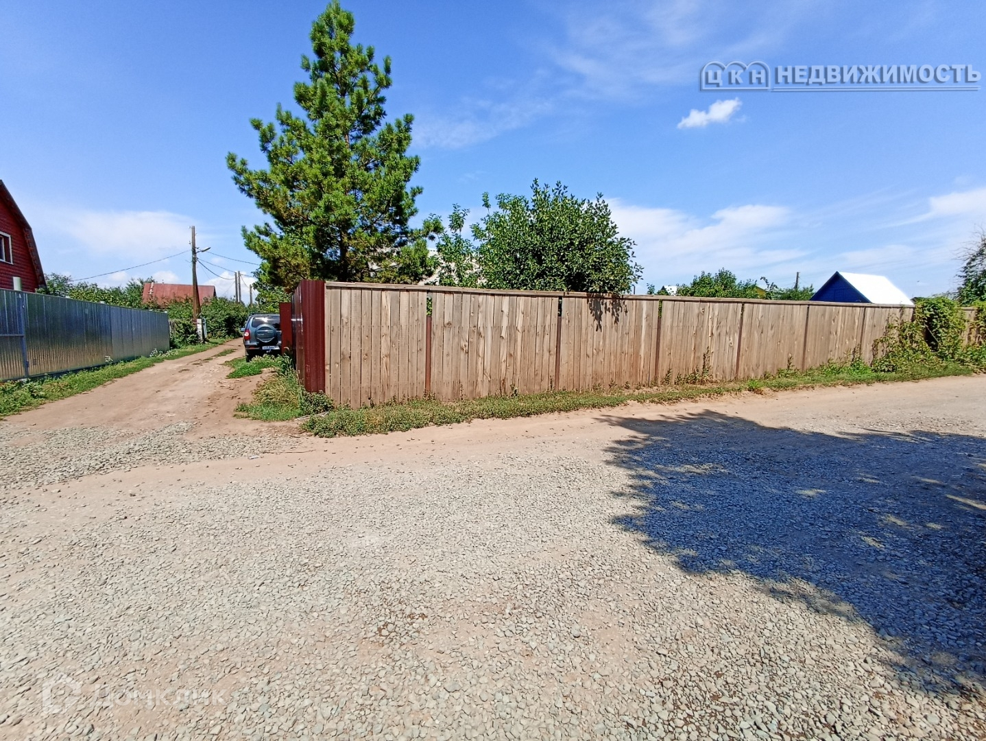Участок угловой, огорожен забором. Подъездные пути широкие, зимой чистят дороги.