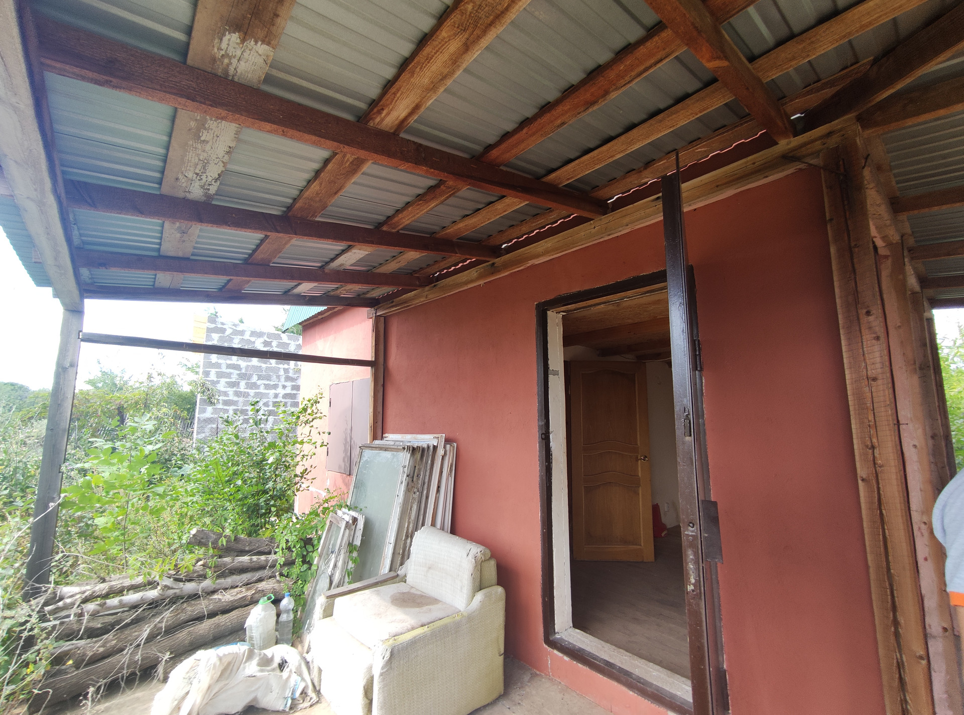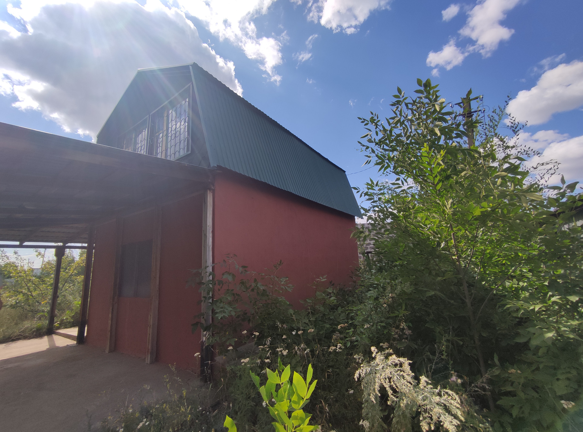 На участке имеется 2-этажный дом 37,8 кв. м., по документам назначение нежилое, 2013 года постройки, материал стен — газобетонный блок, межэтажные перекрытия деревянные. Дом внутри с простой отделкой, среднее состояние, 4 комнаты. Крыша покрыта профлистом.