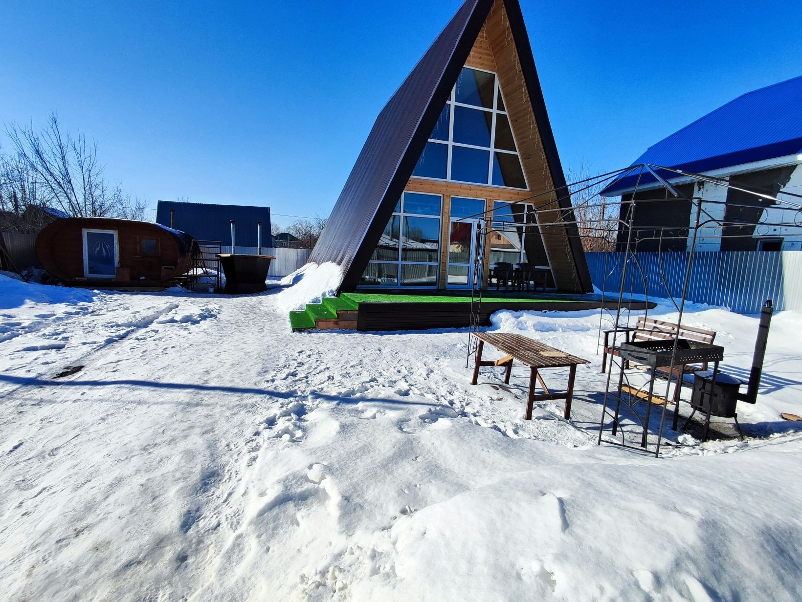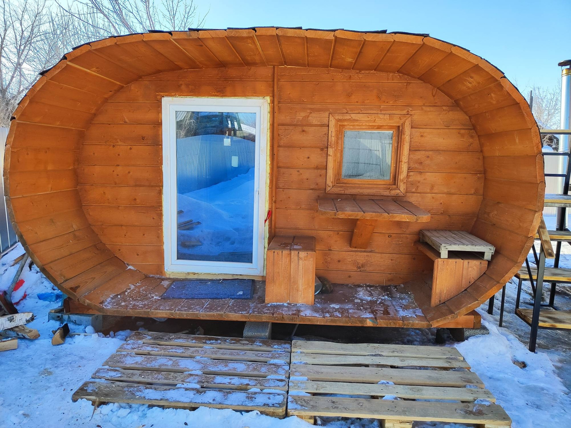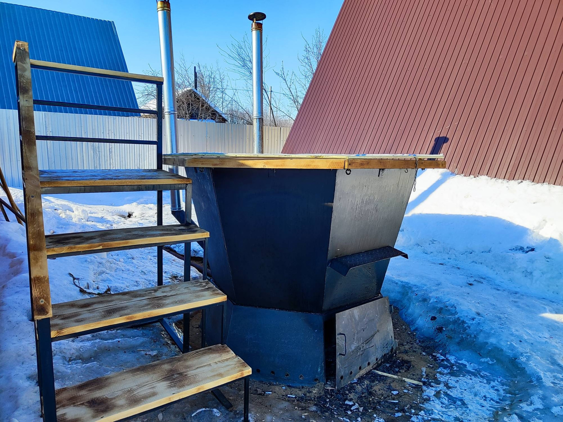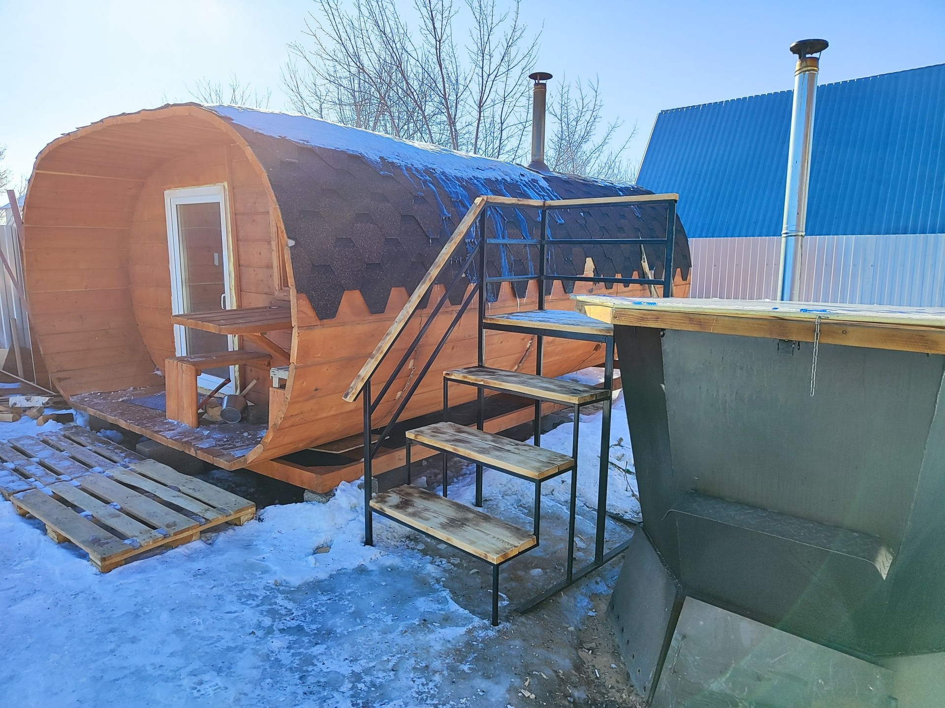 Имеется баня- бочка+ чан с подогревом.