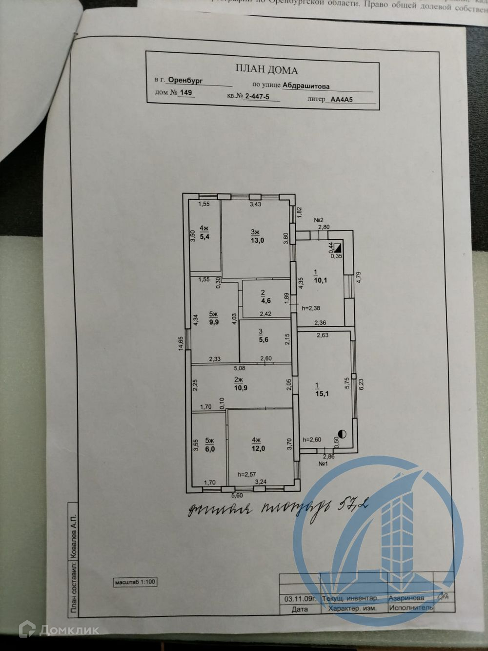 1-этажный дом, 57 м2, на продажу в Оренбурге, улица Абдрашитова, 149