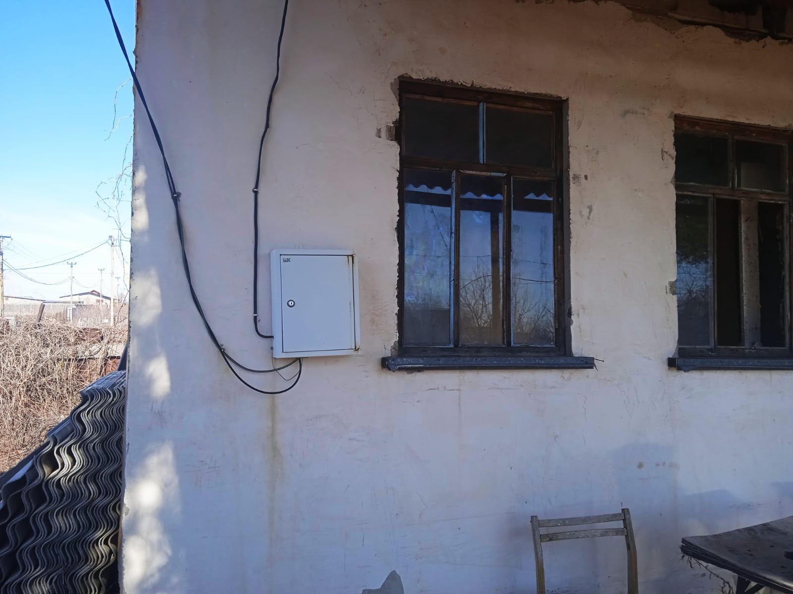 Участок правильной формы, ровный. Центральное водоснабжение. Электричество заведено в небольшой дом из ж/бетонных панелей.
