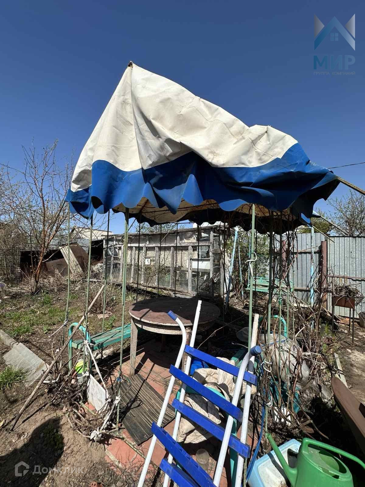 На участке дом из силикатного кирпича 50 м2,баня,беседка,теплица, туалет, душ, забор со всех сторон,площадка для машины,бетонированные дорожки,пластиковые трубы для полива,емкость.