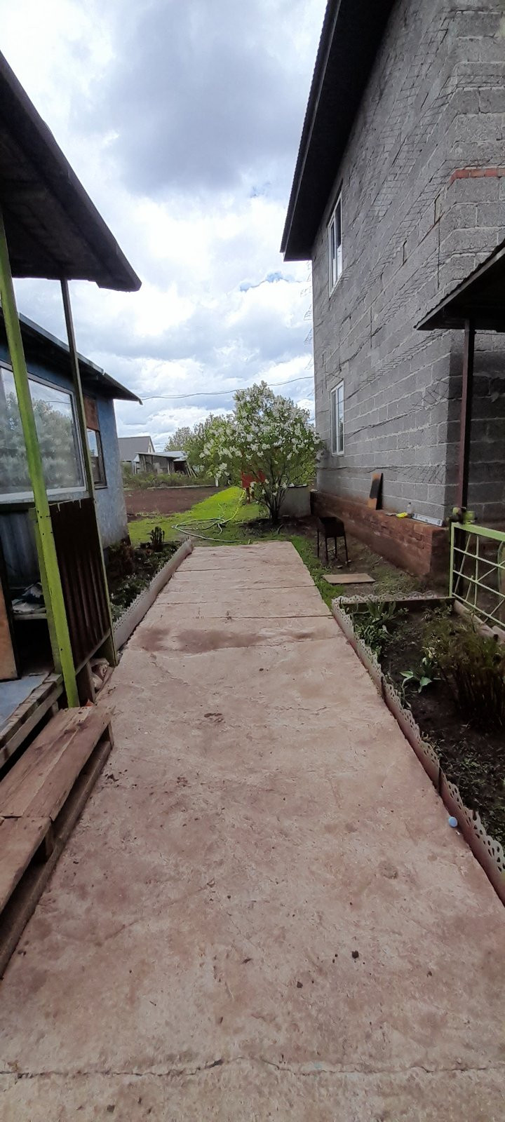 На участке все дорожки забетонированы ,имеется большой навес для машины.