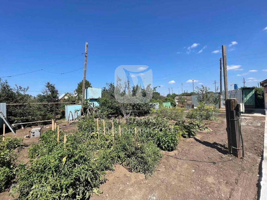 По всему периметру участка стоит забор из профлиста. На участке посажены все насаждении: виноград, яблони, слива, тернослив…