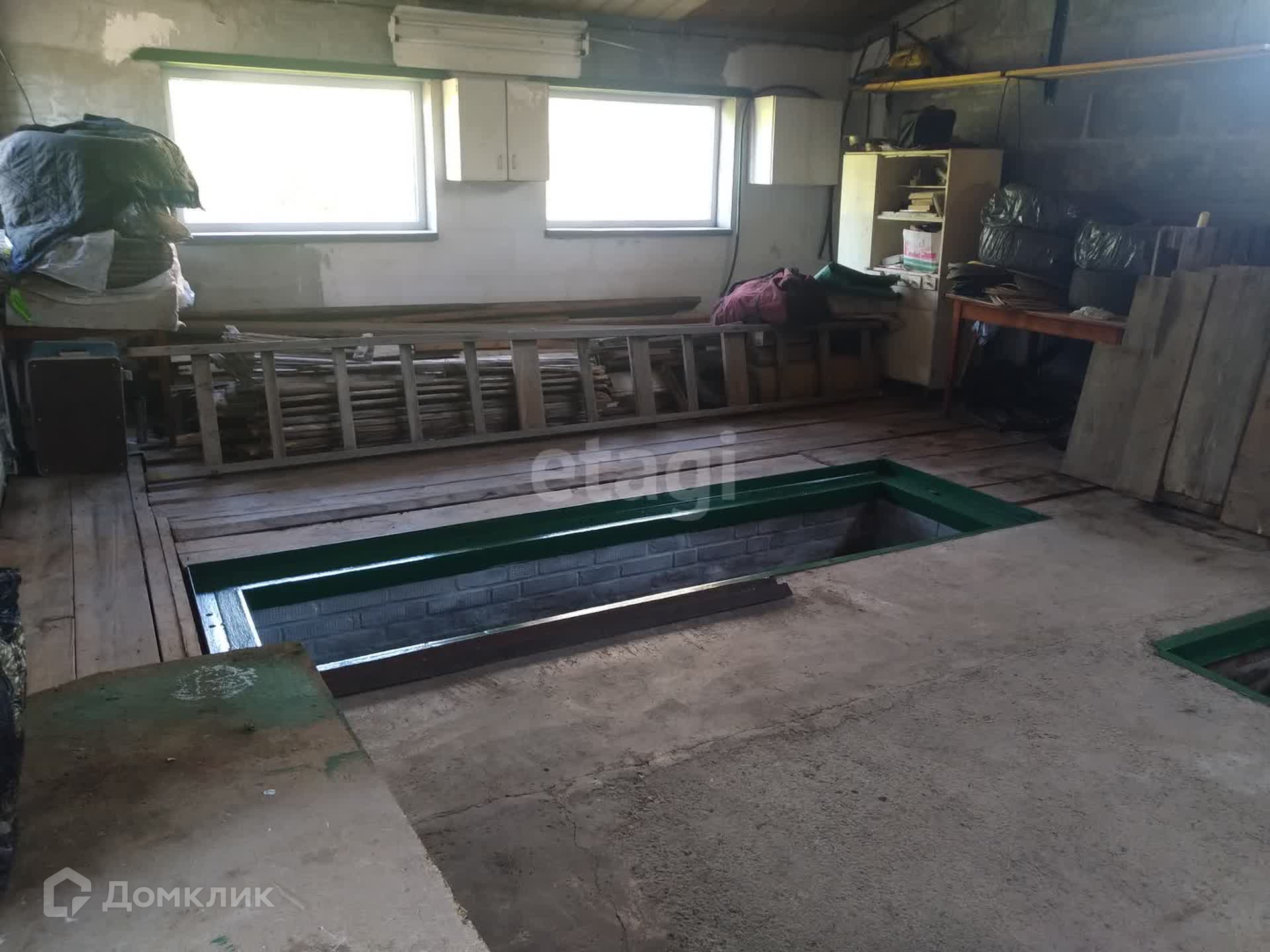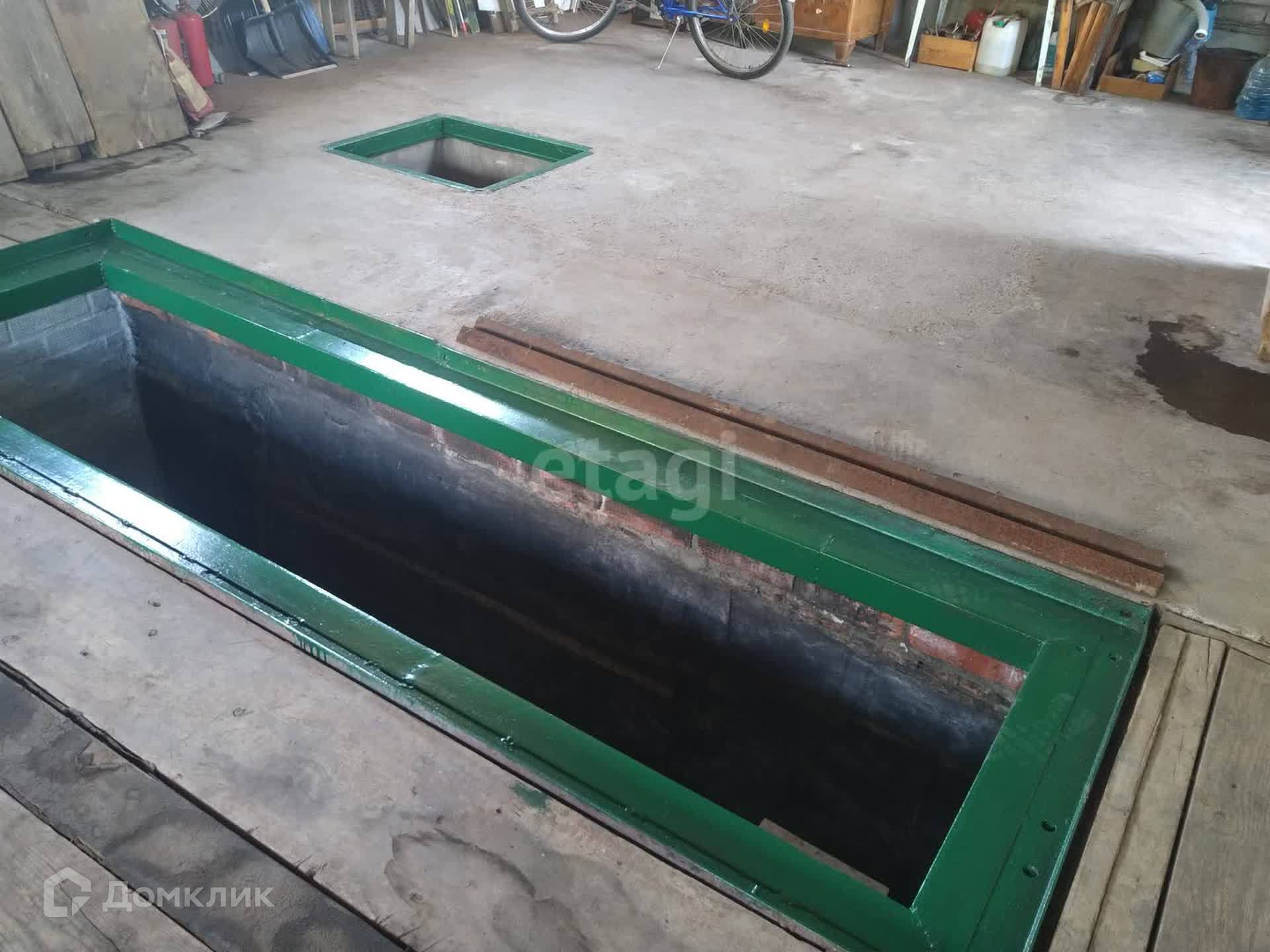 Во дворе гараж 6*9 с рольваротами и пластиковыми окнами, из пеноблока, обложен кирпичом. В гараже есть смотровая яма и погреб.