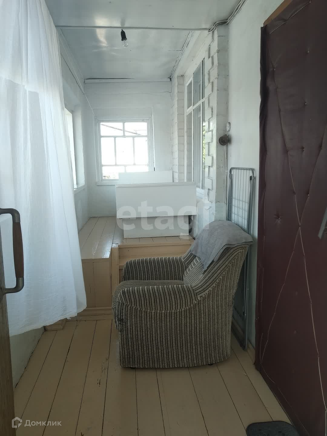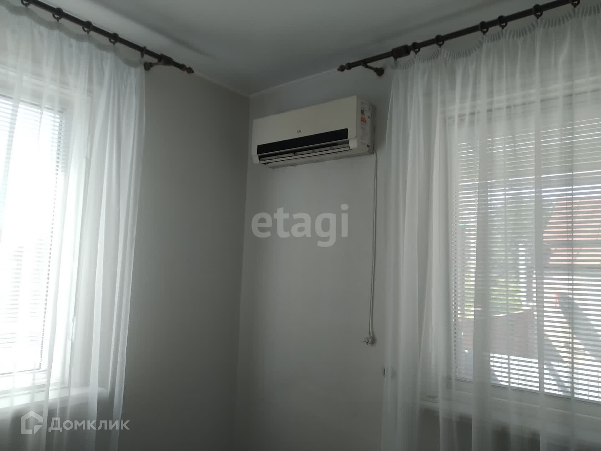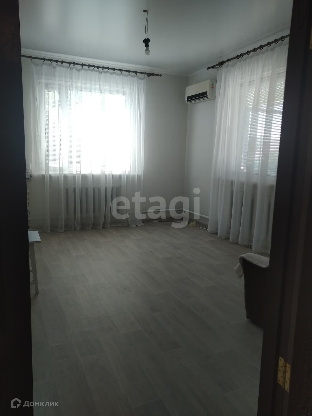 В доме 4 комнаты, зал 18 кв.м., 2 спальни по 13 кв.м., и одна комната 10 кв.м., туалет, выход на парадную лестницу. В зале и спальне пластиковые окна, в двух других комнатах - добротные деревянные окна. В зале установлен кондиционер. В доме сделан косметический ремонт.