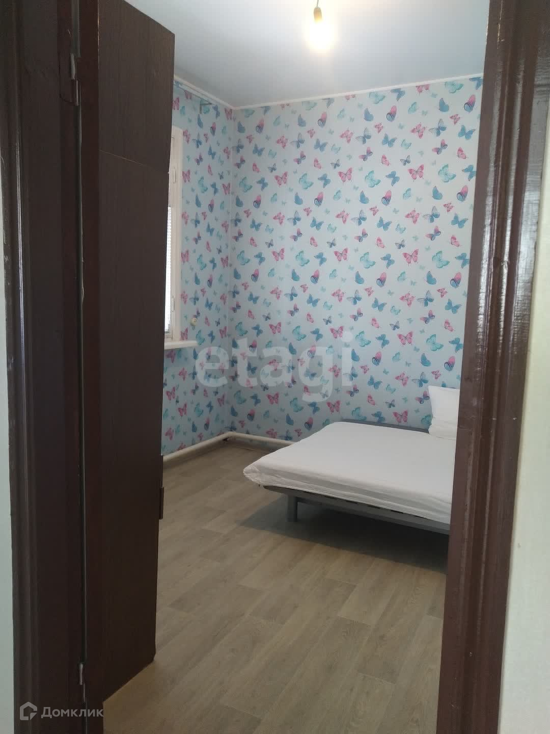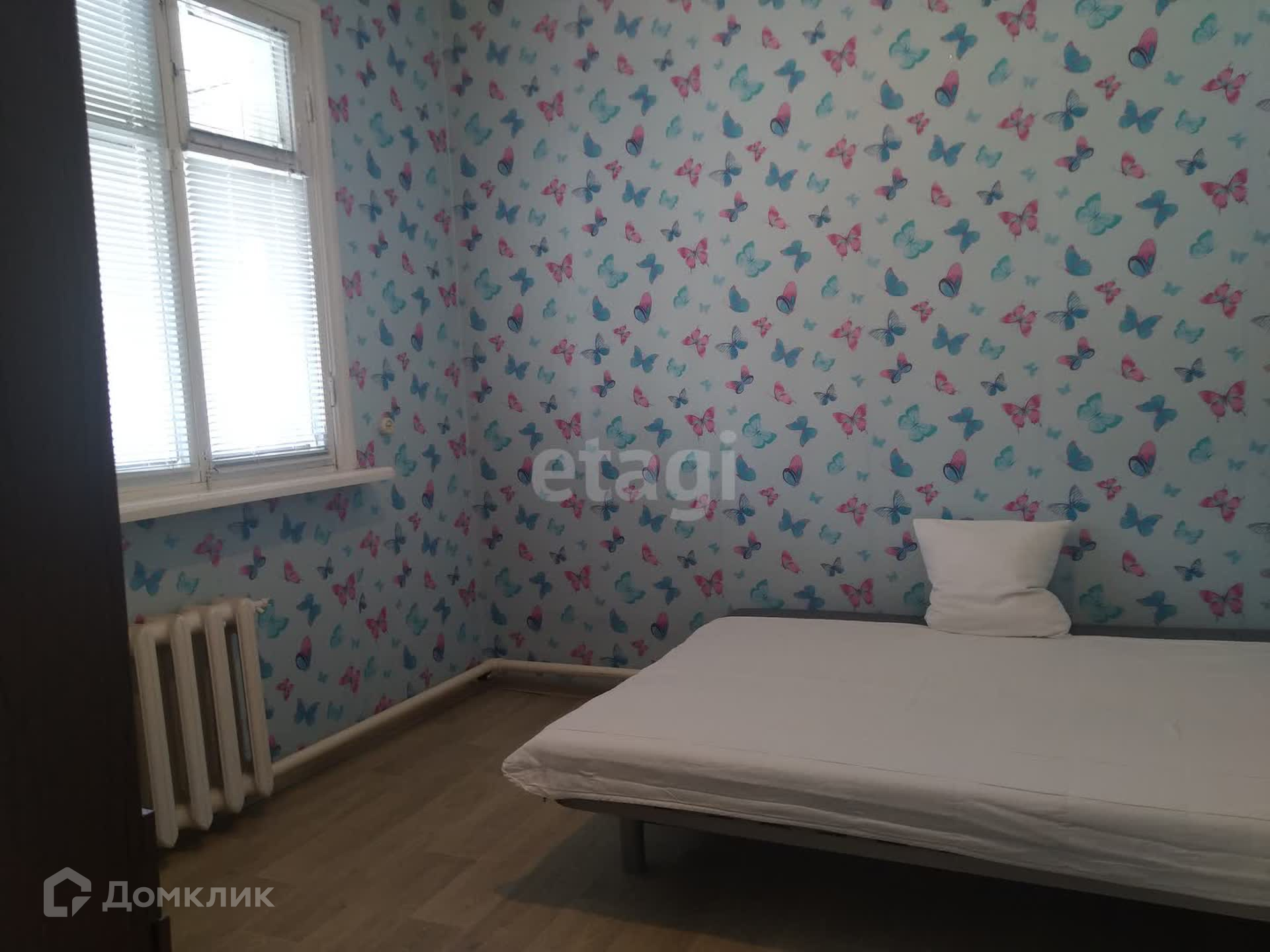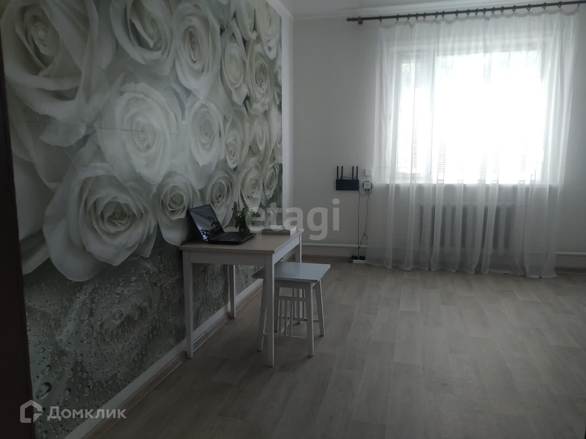 В доме 4 комнаты, зал 18 кв.м., 2 спальни по 13 кв.м., и одна комната 10 кв.м., туалет, выход на парадную лестницу. В зале и спальне пластиковые окна, в двух других комнатах - добротные деревянные окна. В зале установлен кондиционер. В доме сделан косметический ремонт.