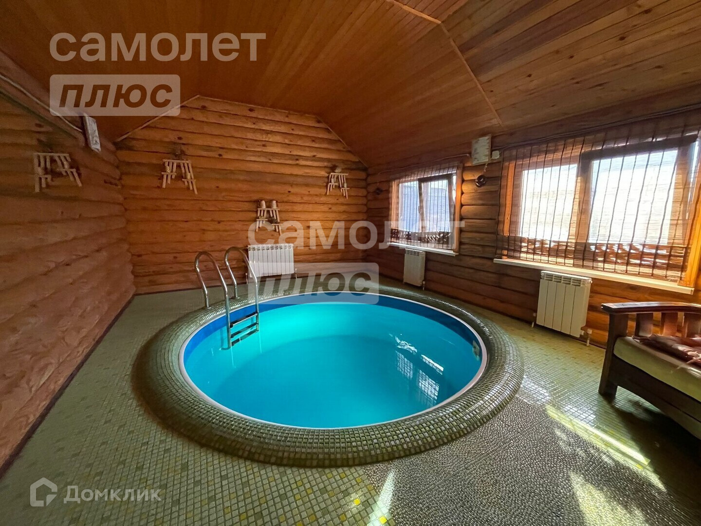 На участке построена баня из сруба. В бане: парная на дровах, бассейн с системой очистки, санузел, душевая, комната отдыха. Отапливается от газового котла, теплые полы.