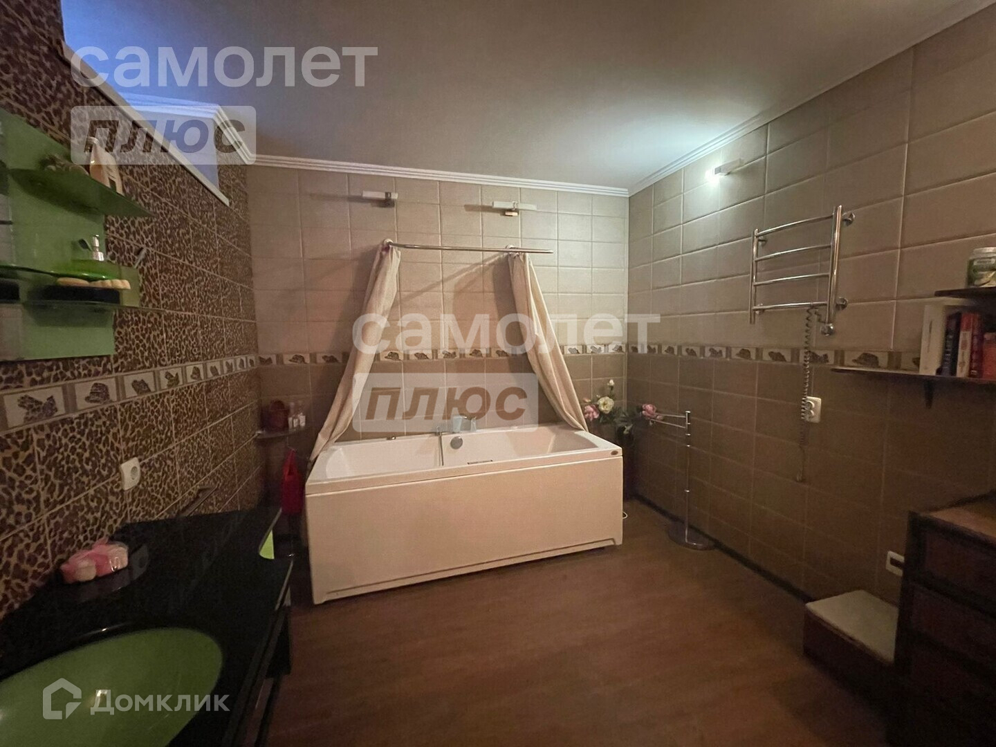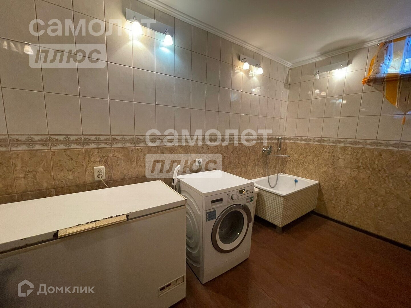 Имеется теплый гараж, отделан плиткой.