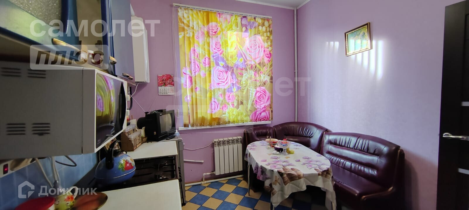 на полу плитка с подогревом (кухня, коридор, с/у), линолеум