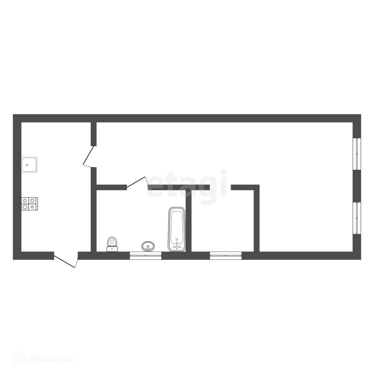 Общая площадь 34.3 м2