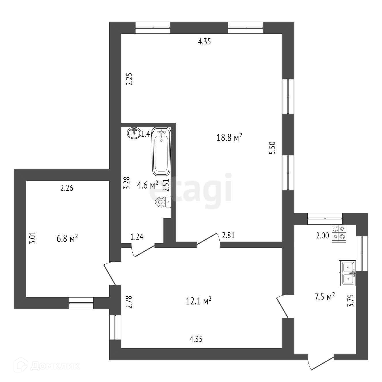 Общая площадь 49.8 м2