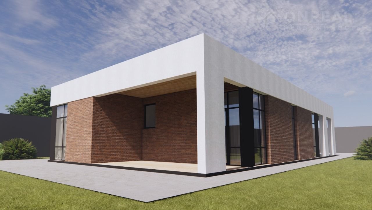 Современный скандинавский стиль, плоская крыша, железобетонные стены, фундамент и перекрытия. Большие панорамные окна наполняют дом светом, по всему дому проведен тёплый пол. Полусухая стяжка пола, отштукатуренные стены, проведена электрика, потолки подготовлены под финишную отделку.