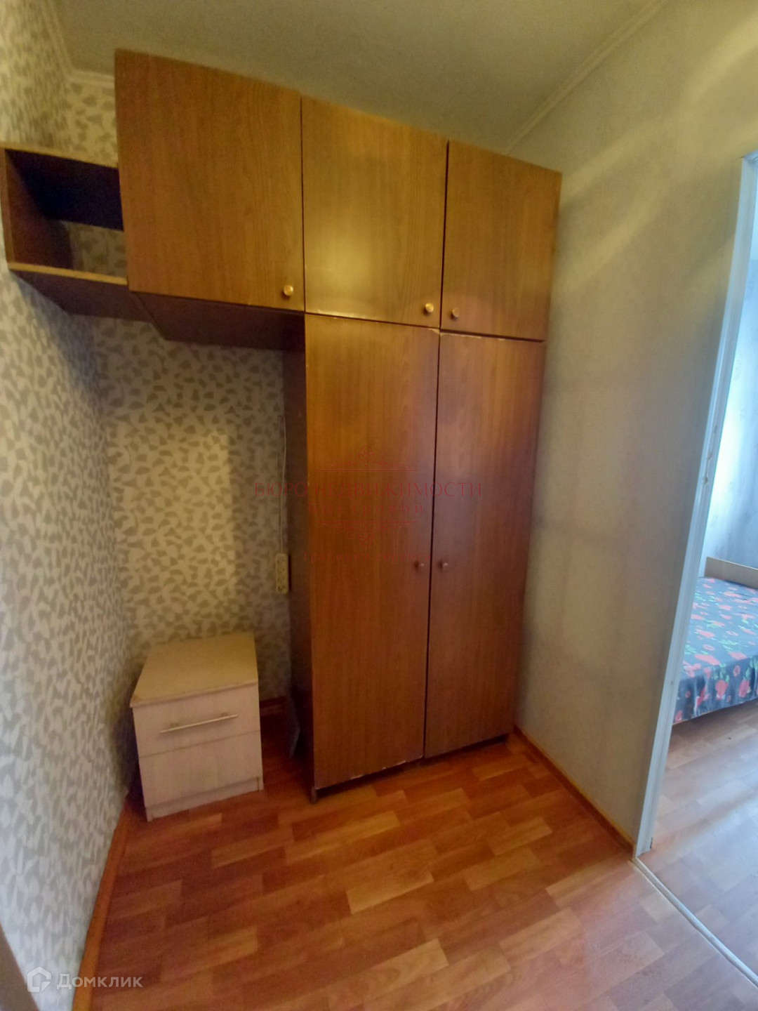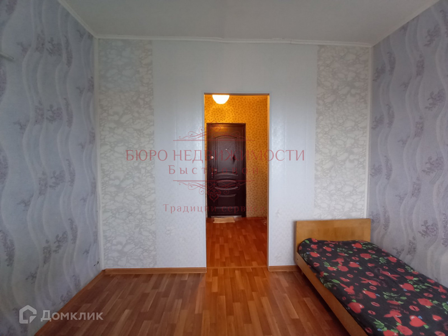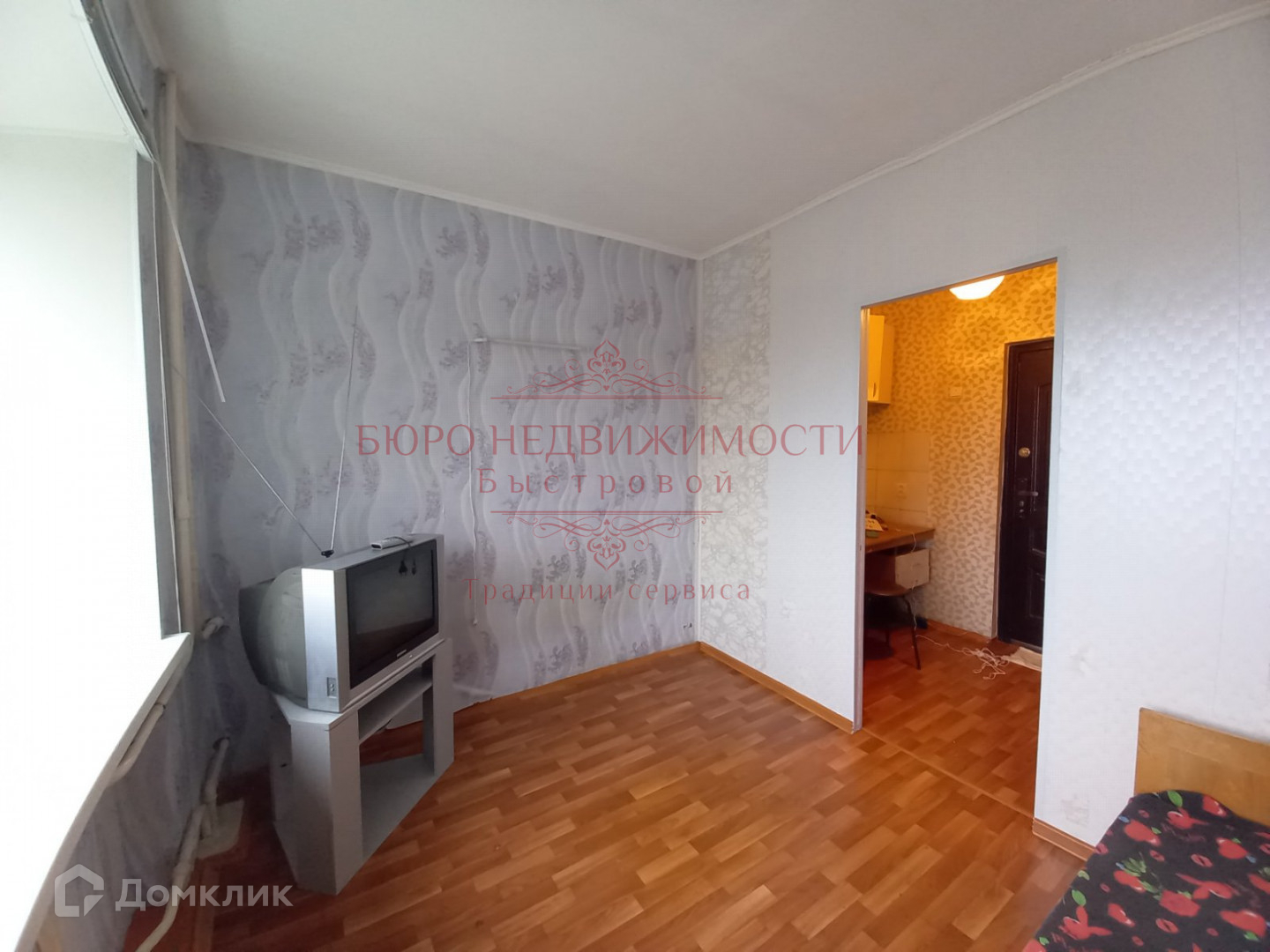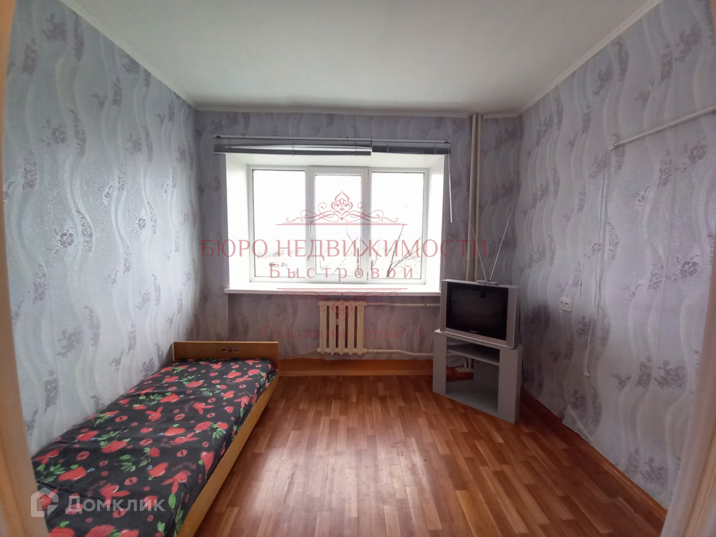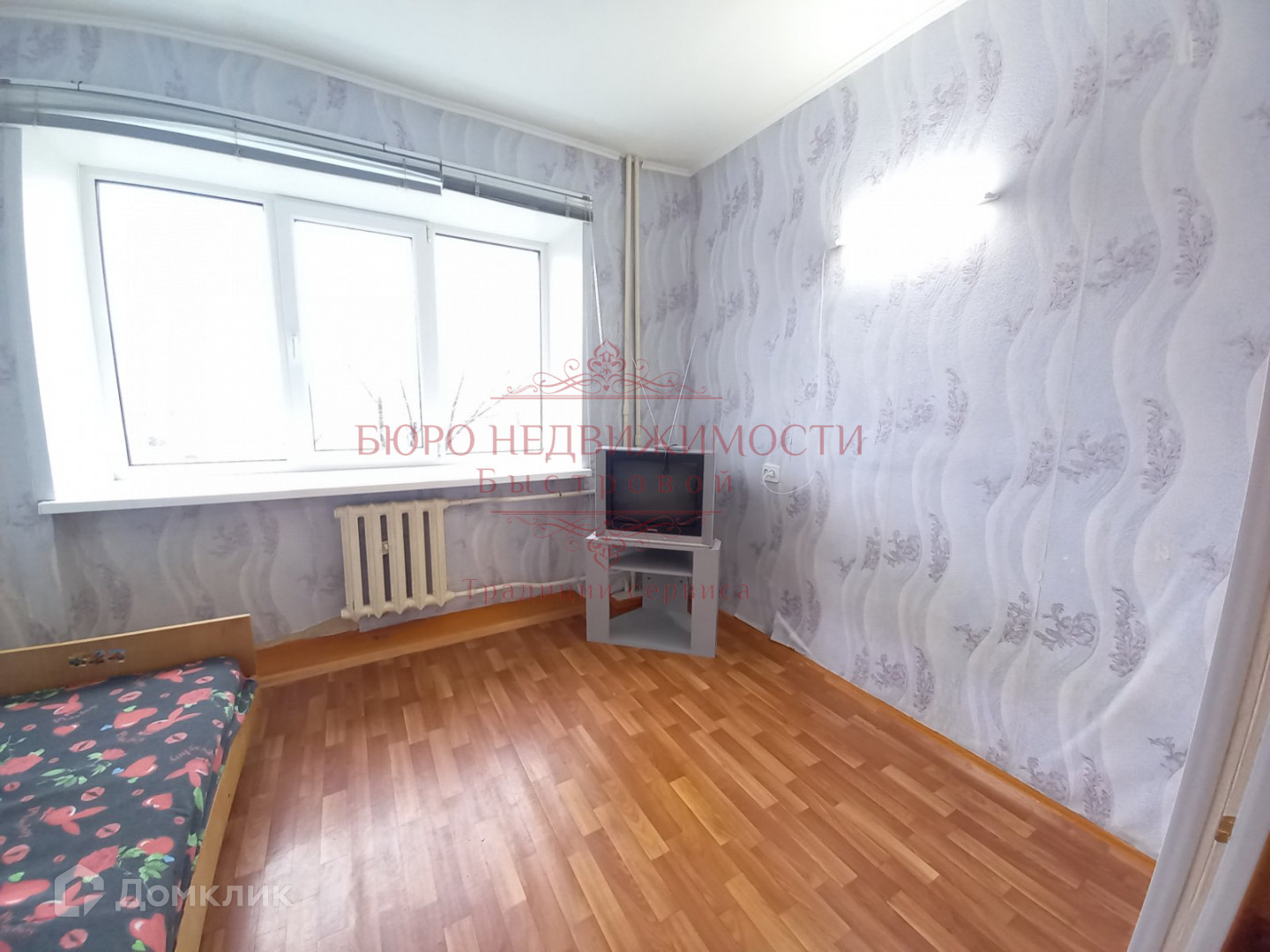 В комнате установлено пластиковое окно, на полу линолеум, на стенах обои. В комнате чисто, тепло и уютно.
