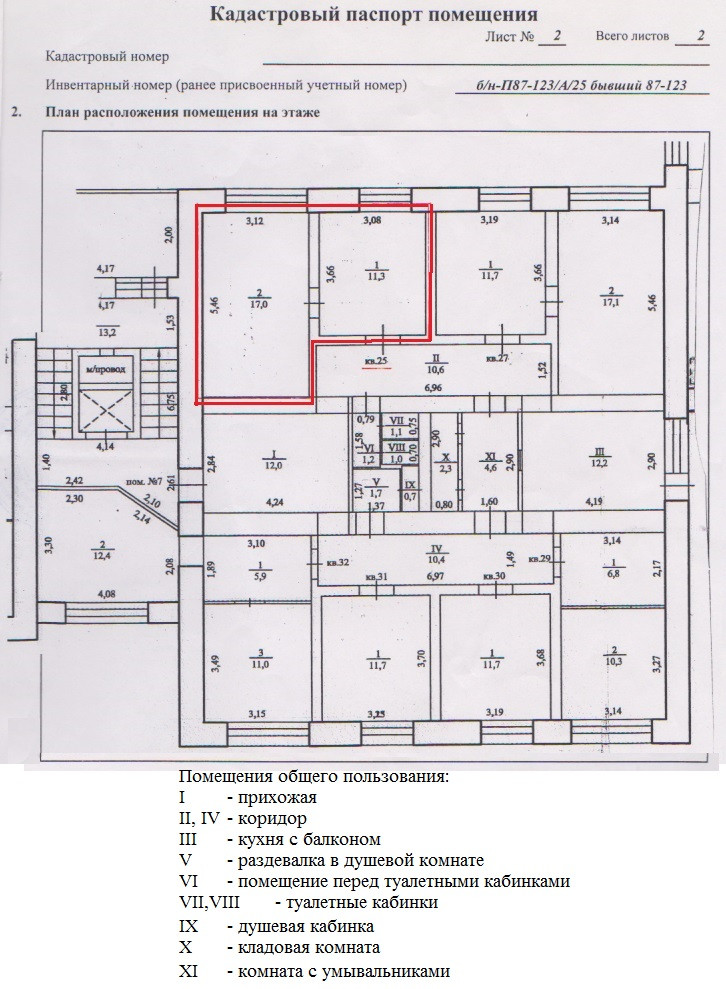 Жилая площадь 17 м2