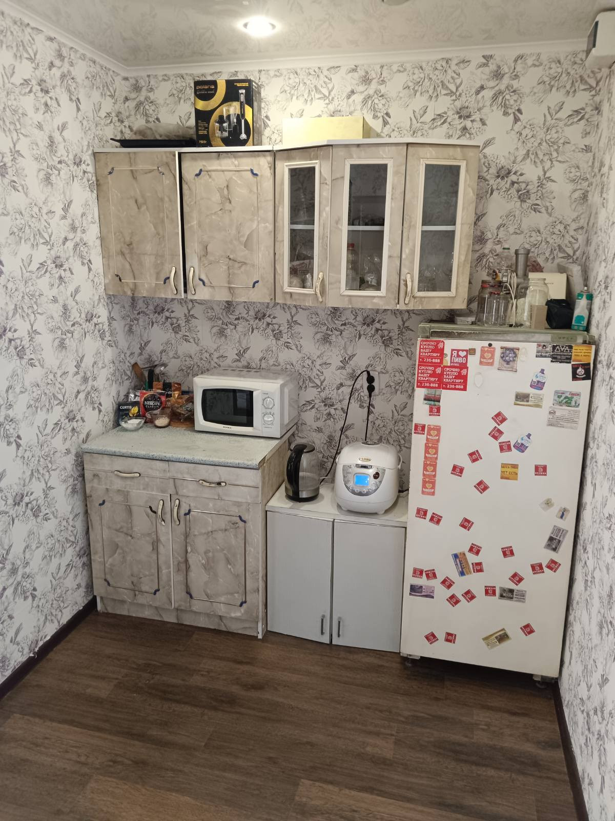 Комната чистая, меблированная, с хорошим ремонтом. Один собственник с момента приватизации.Долгов нет. Комната удобно разделена на две жилые комнаты -кухня и зал. Пластиковое окно, натяжной потолок, железная добротная дверь, на полу линолеум. Не угловая.