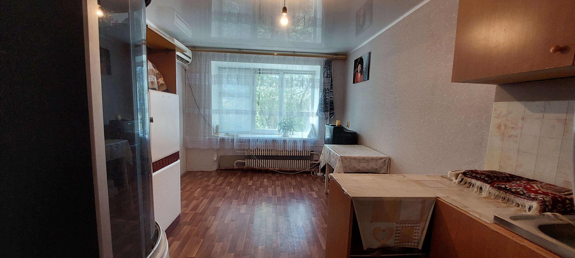 Новым собственникам остаётся кухонный гарнитур, душевая кабина.