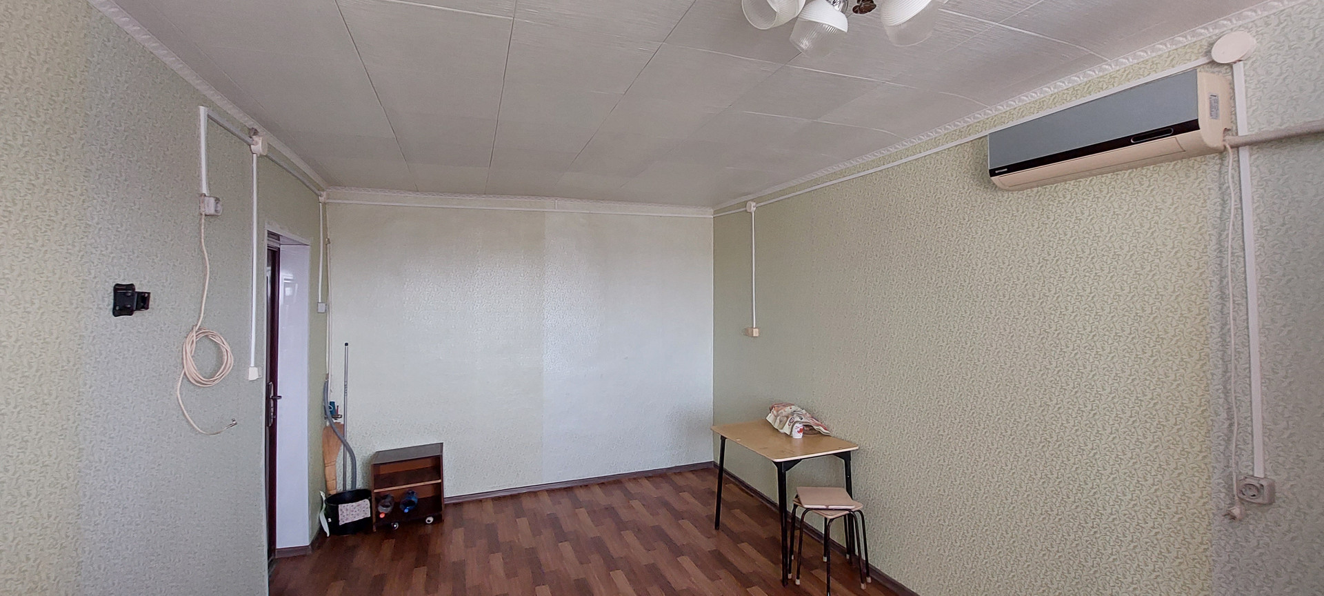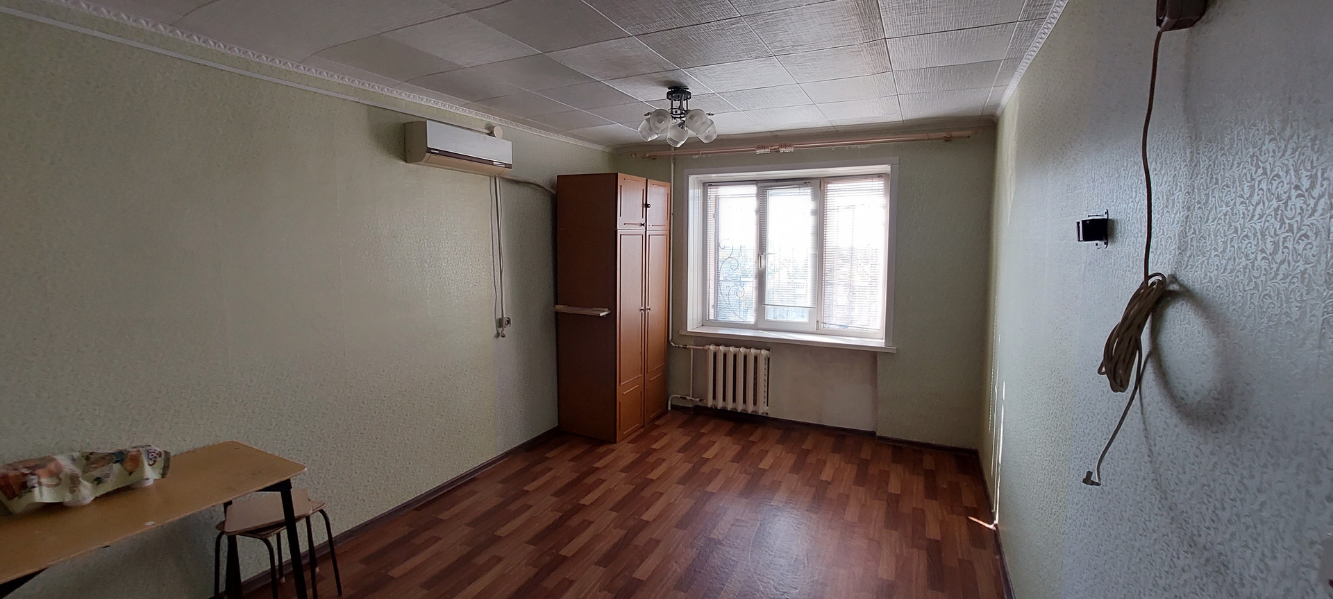 В комнате остается шкаф и кондиционер.